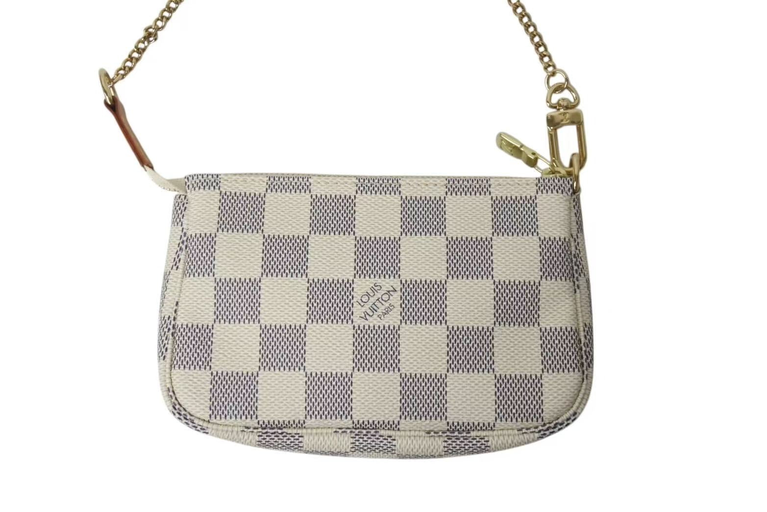 新品同様 LOUIS VUITTON ルイヴィトン ミニポシェットアクセソワール アクセサリーポーチ N58010 ダミエアズール ホワイト 中古 4b000210