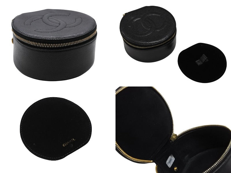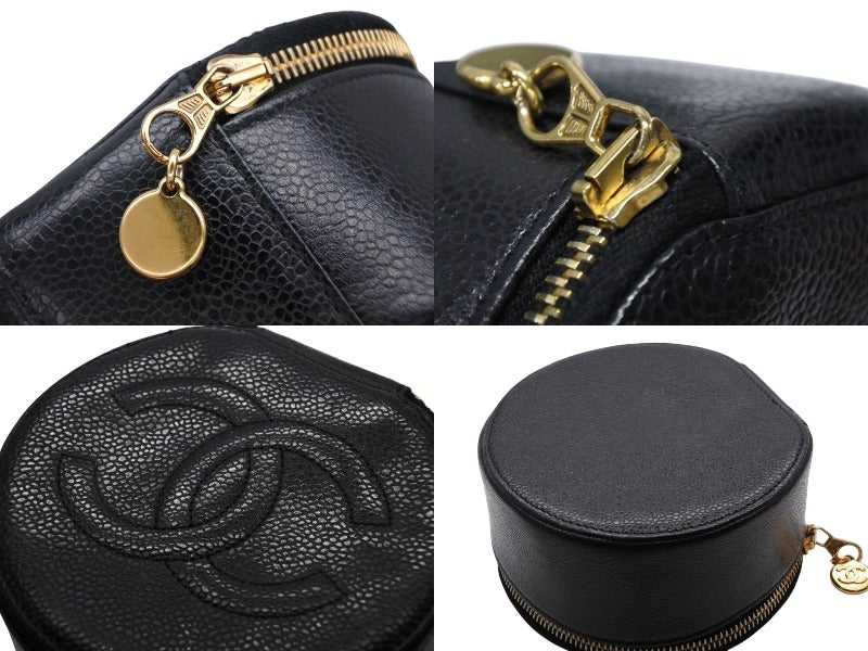 極美品 CHANEL シャネル ココマーク ジュエリーケース アクセサリーポーチ 2番台 キャビアスキン ブラック ゴールド金具 中古 4b007193