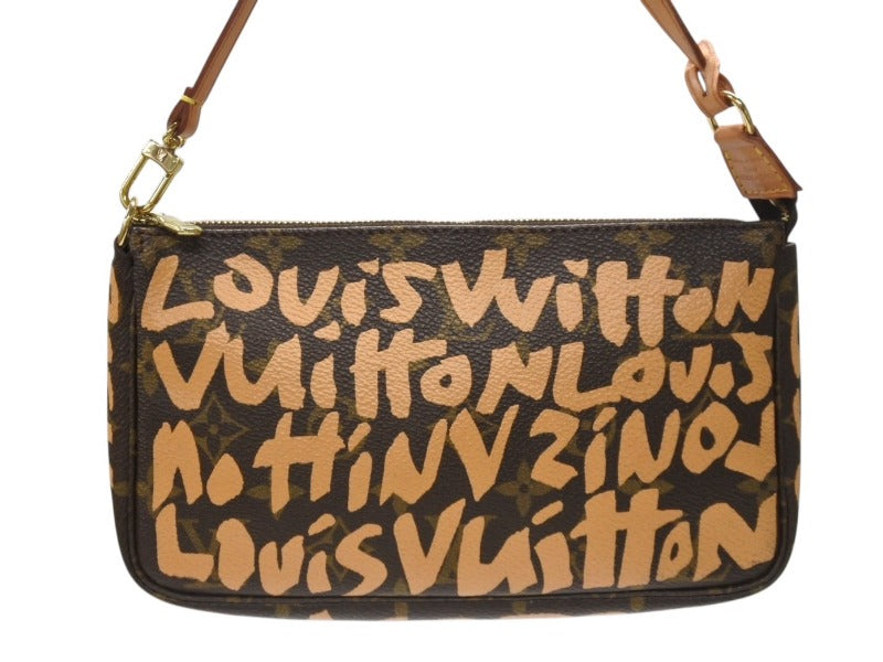 極美品 LOUIS VUITTON ルイヴィトン ポシェットアクセソワ―ル アクセサリーポーチ M92193 モノグラム グラフィティ ベージュ PVC レザー 中古 4b007329