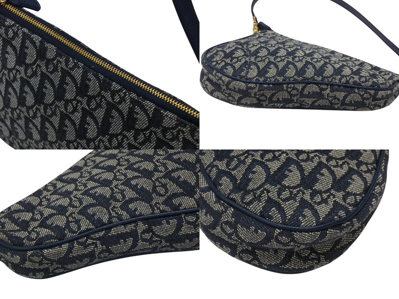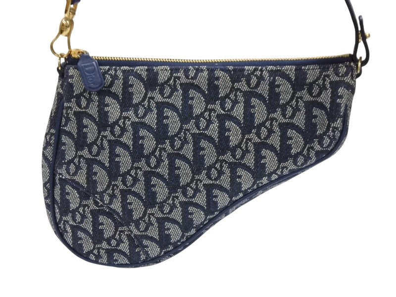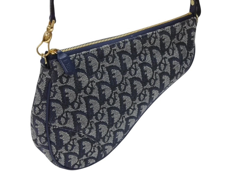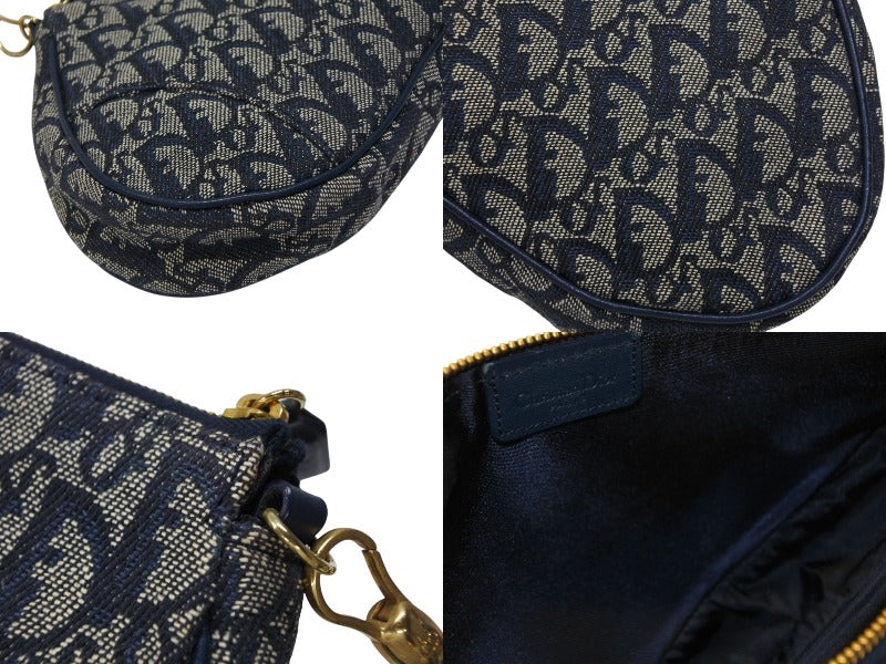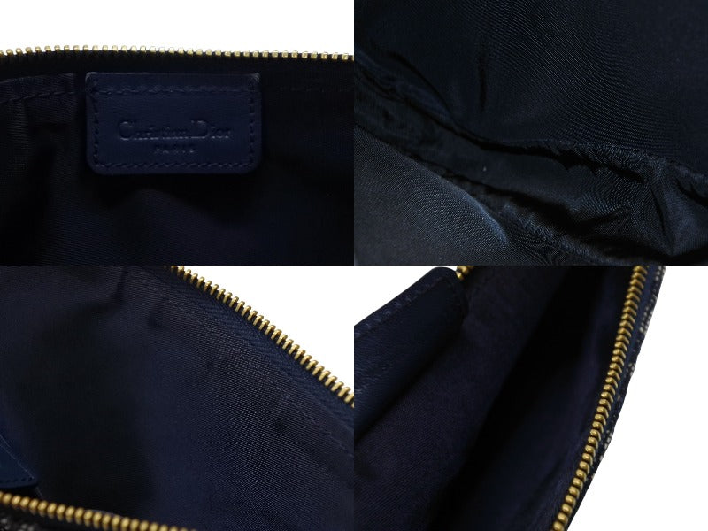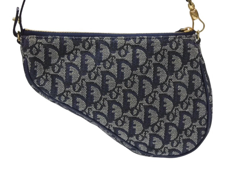 極美品 Christian Dior クリスチャンディオール サドルポーチ アクセサリーポーチ MC 0071 ネイビー トロッター柄 ガリアーノ期 中古 4b007899