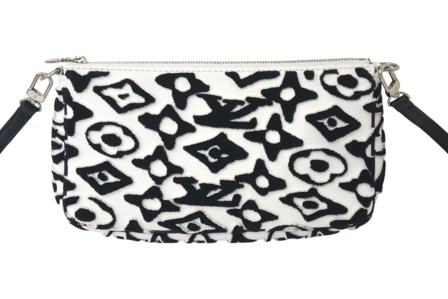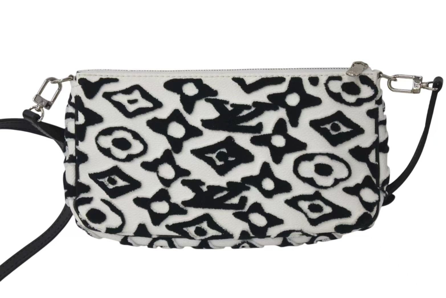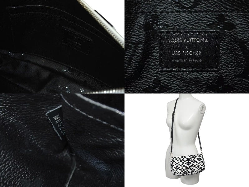 極美品 LOUIS VUITTON ルイヴィトン × ウルス フィッシャー ポシェット アクセソワール アクセサリーポーチ M45565 ブラック ホワイト 中古 4c073270