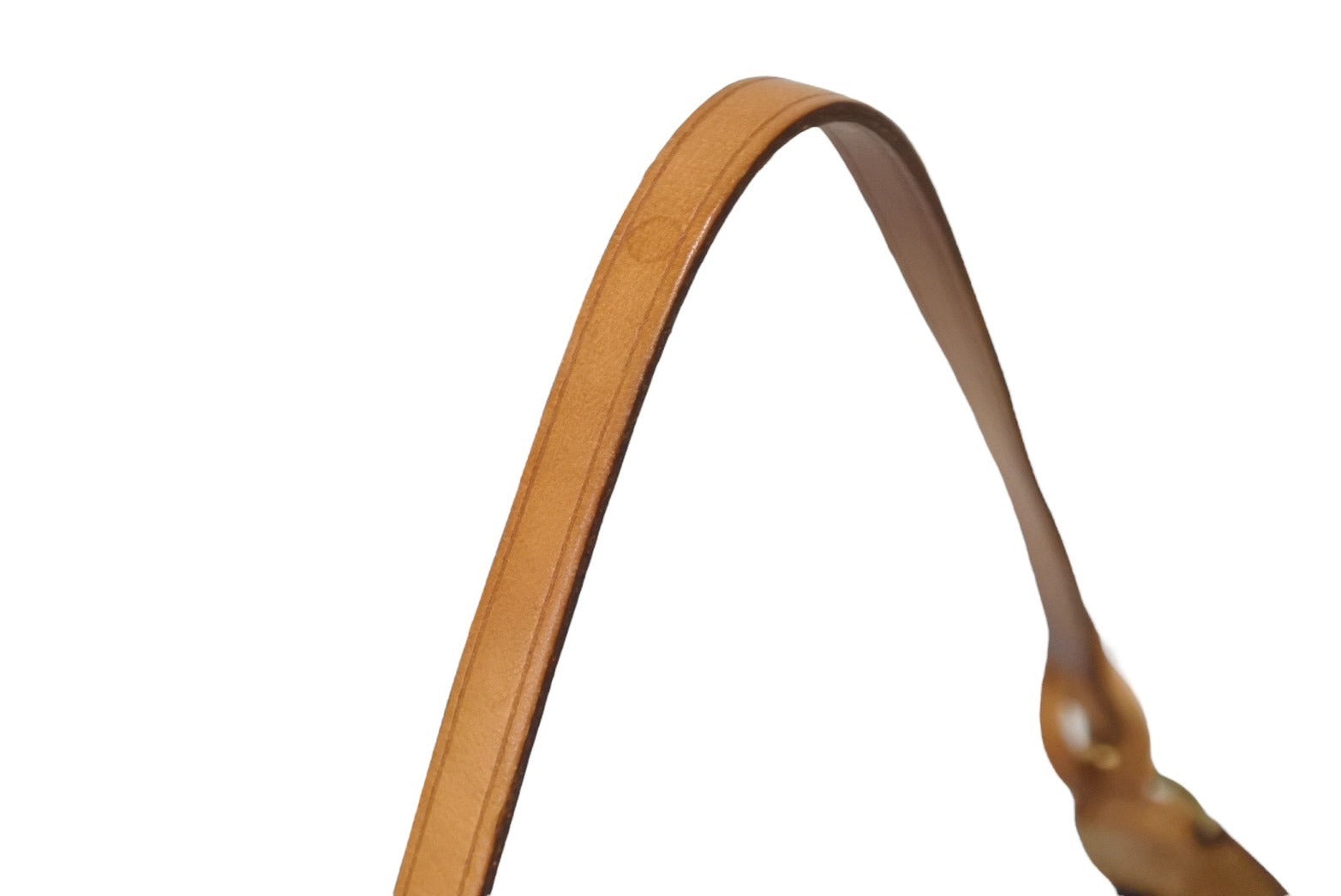 ストラップ部分スレ、シワ、ヒビあり。金具全体的に傷あり。ヌメ革ヤケあり。