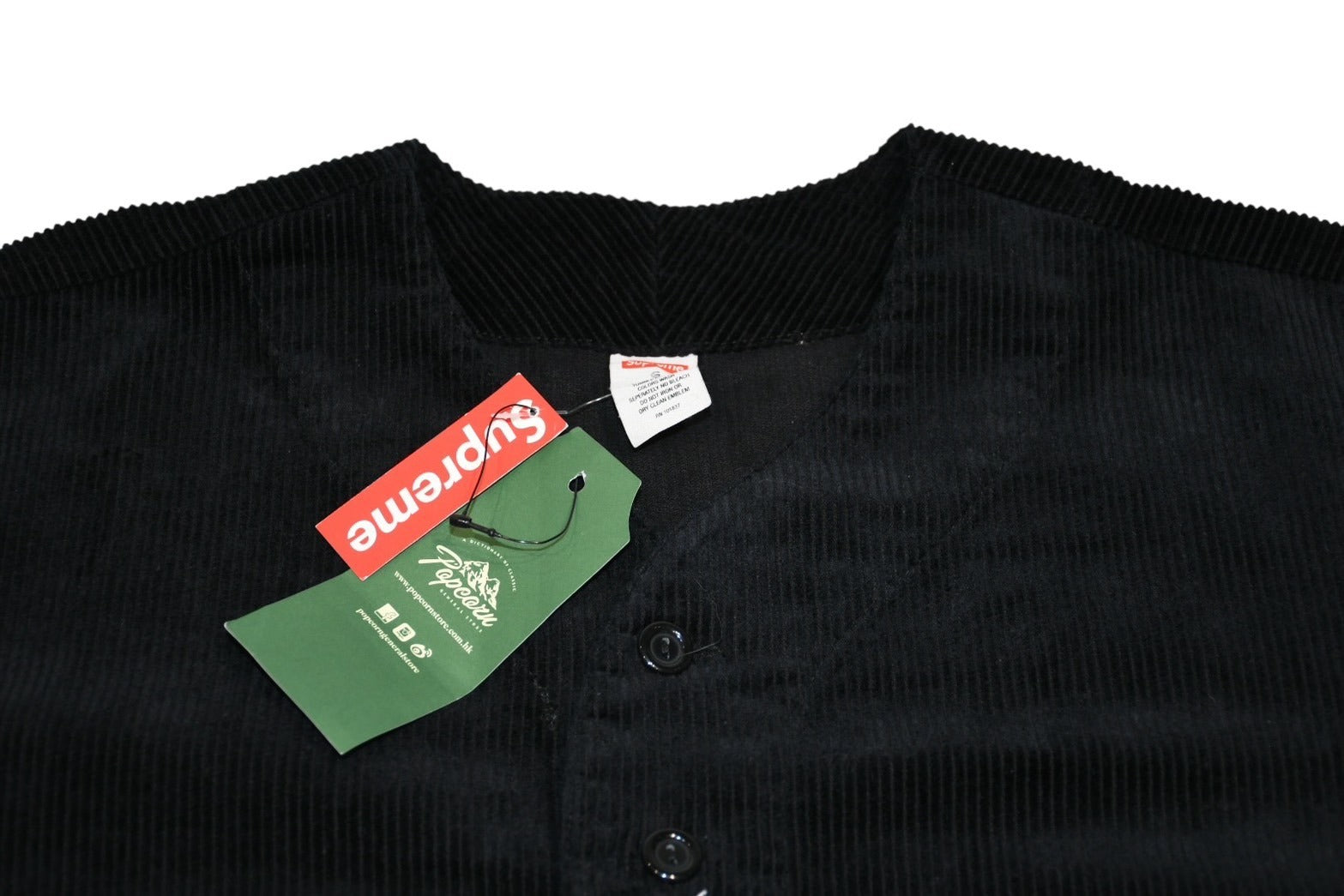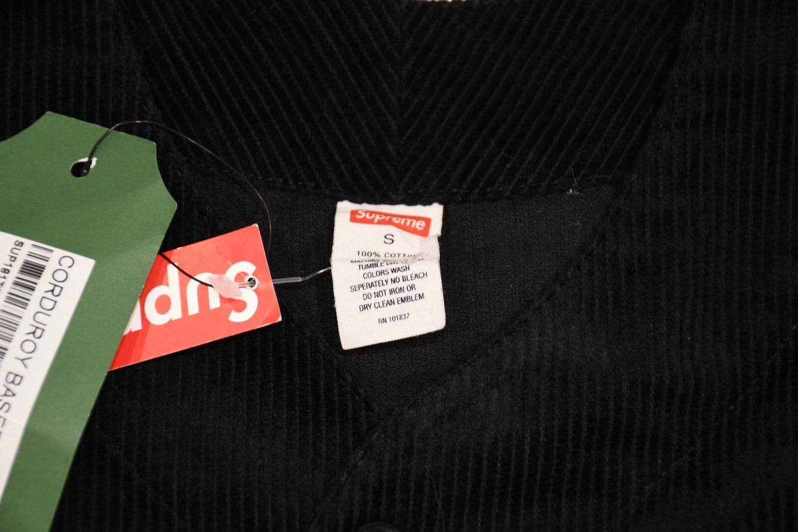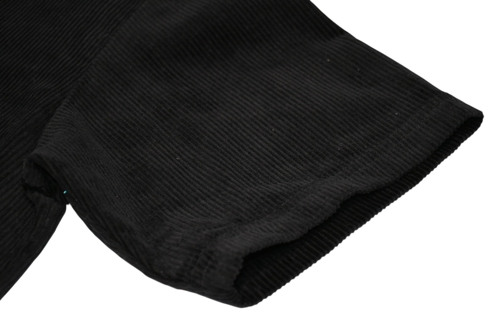 コーデュロイのブラックにロゴの差し色が可愛いベースボールシャツです。