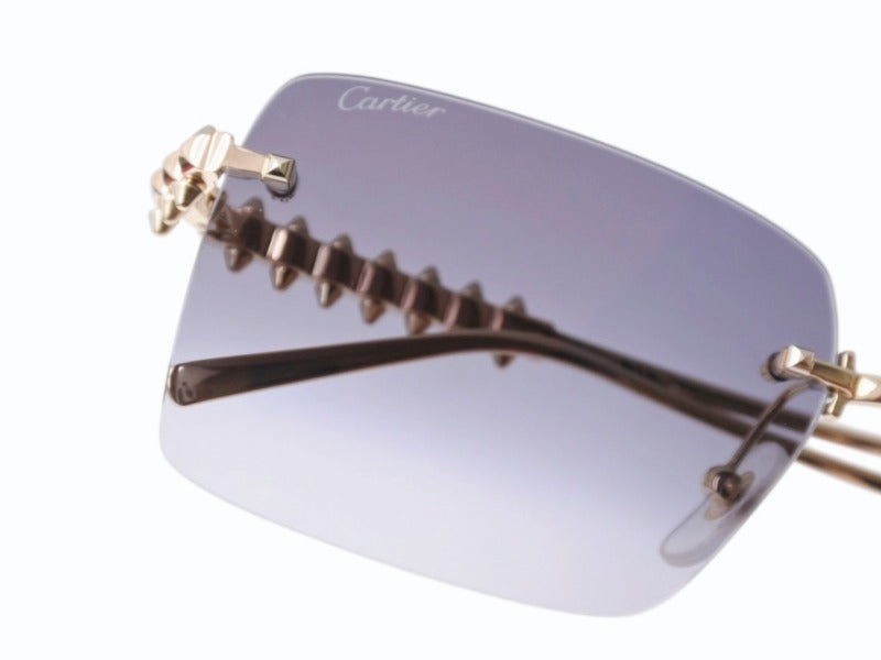 極美品 CARTIER カルティエ クラッシュ ドゥ サングラス リムレス ESW00748 グラデーショングレー ゴールド金具 中古 4b004840