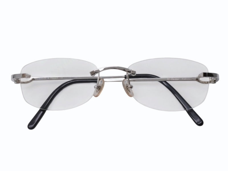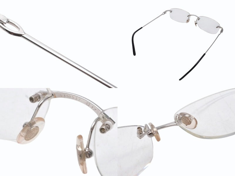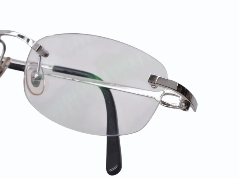 極美品 CARTIER カルティエ メガネ リムレス ブラック サングラス シルバー金具 メタル プラスチック 中古 4b005682