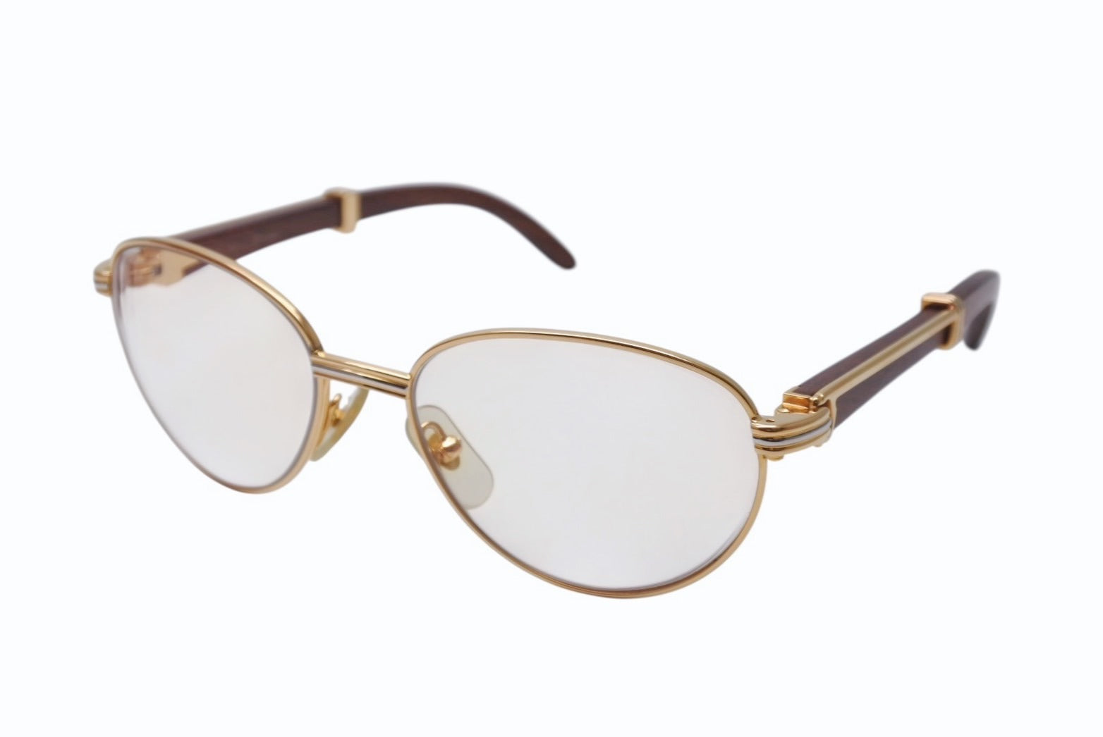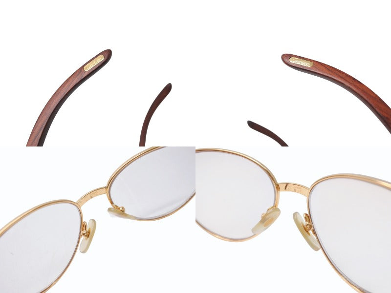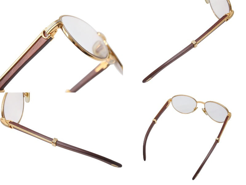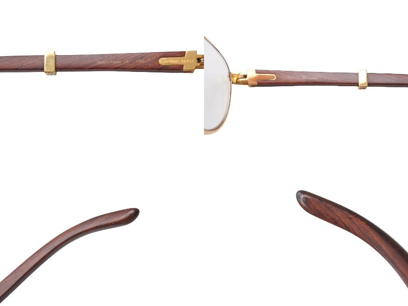 極美品 CARTIER カルティエ Giverny ジヴェルニー 眼鏡 135b サイズ52◻︎16 ウッドテンプル ゴールド シルバー 度入り 中古 4b006523
