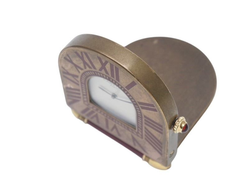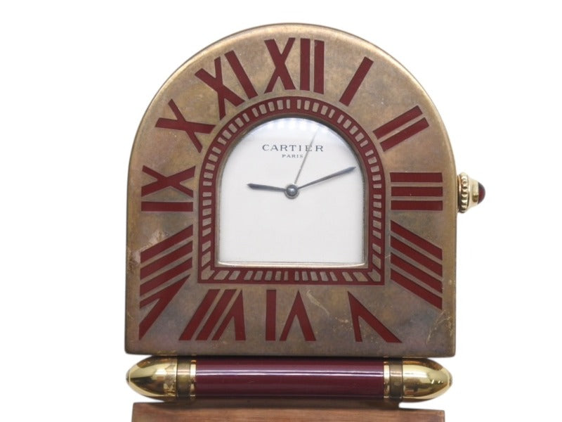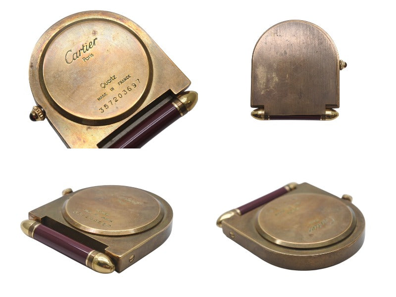 CARTIER カルティエ 折り畳み式 トラベル クロック A10 置き時計 357203697 フランス製 ワインレッド アンティークゴールド金具 美品 中古