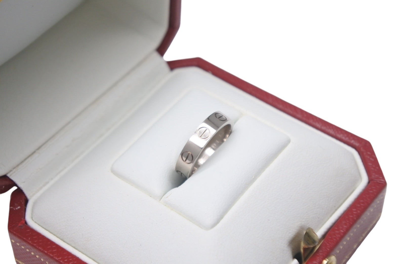 シンプルでモダンなフォルムとホワイトゴールドの輝きが指元にクールな印象を与えます。