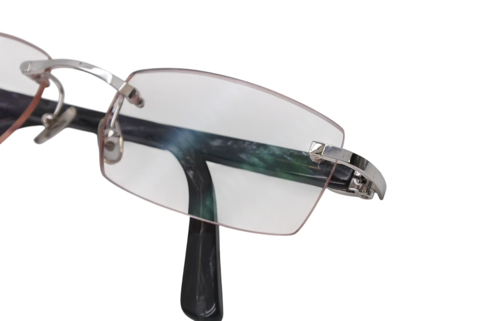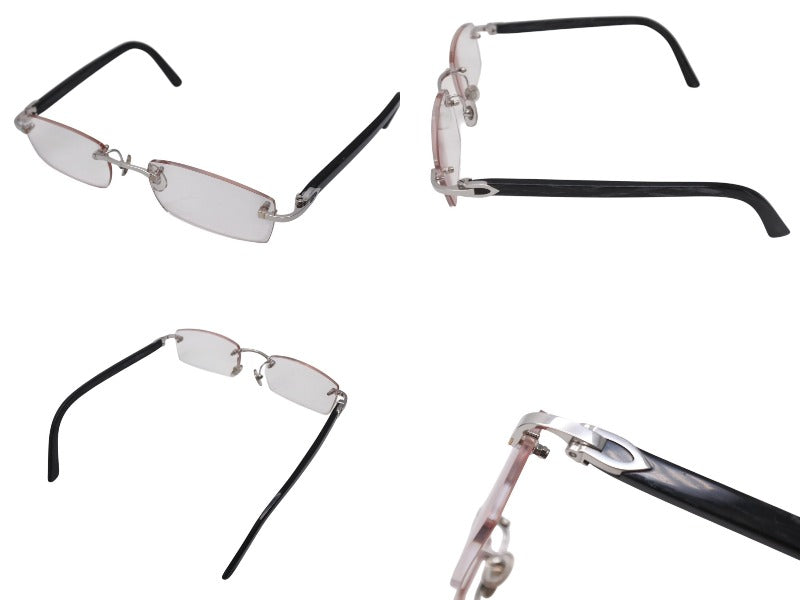 Cartier カルティエ メガネ リムレス フチなし 度入り 4639704 フランス製 プラスチック メタル ブラック □20 美品 中古 4c070613