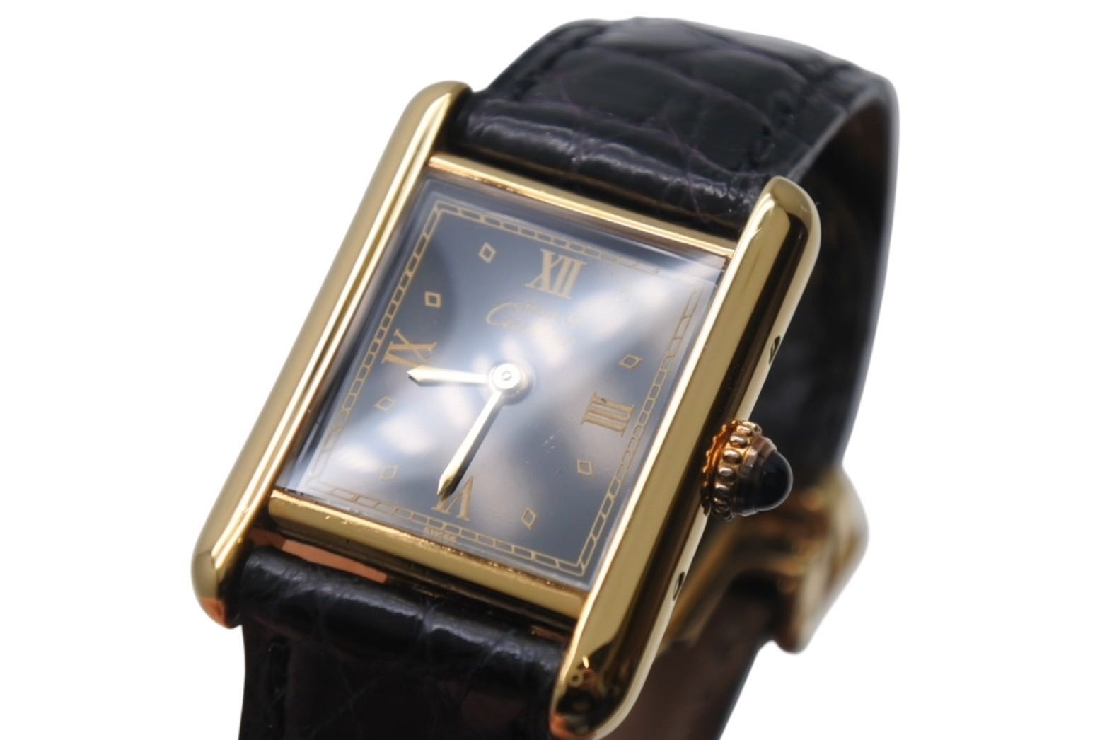 Cartier カルティエ Must Tank SM Black 4Points Roman マストタンクSM 腕時計 5057001 スイス ブラック ゴールド 美品 中古 4c071170