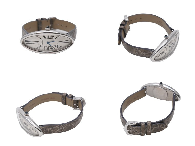極美品 Cartier カルティエ ベニュワールアロンジェ W1532336 腕時計 K18 ホワイトゴールド レザー 中古 4c075898