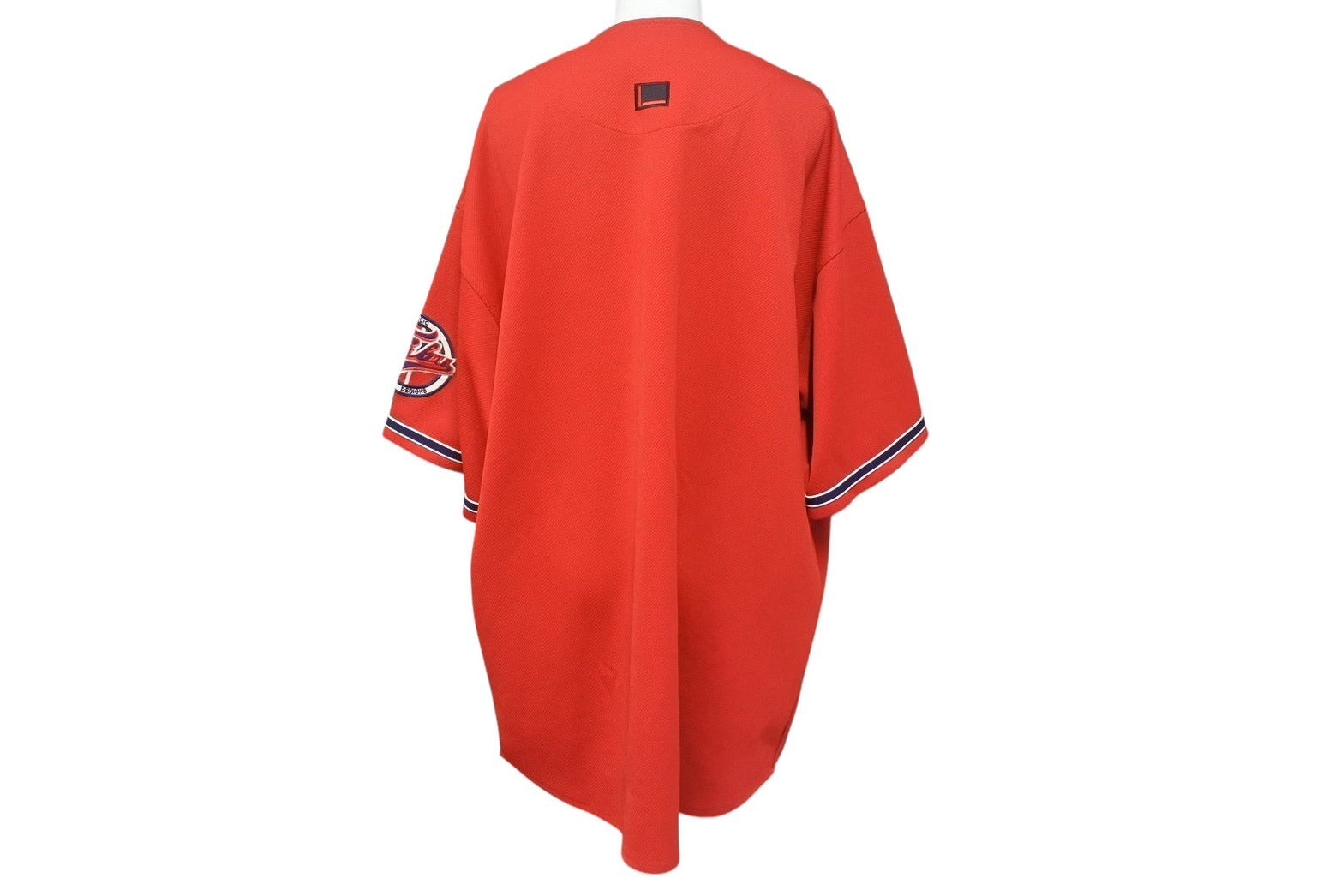 ブランドロゴパッチが特徴的なベースボールシャツです。