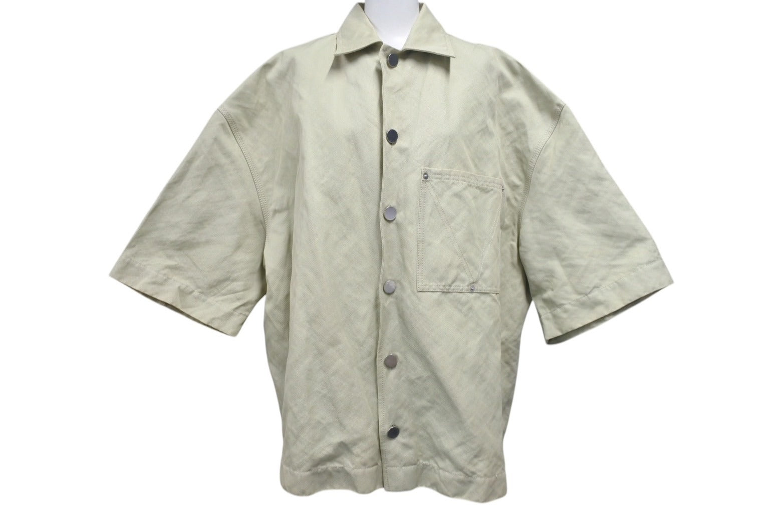 BOTTEGA VENETA ボッテガヴェネタ 22SS ポケット付きオーバーサイズ半袖シャツ 695362 V1V60 カーキ サイズ46 美品 中古 4b001484