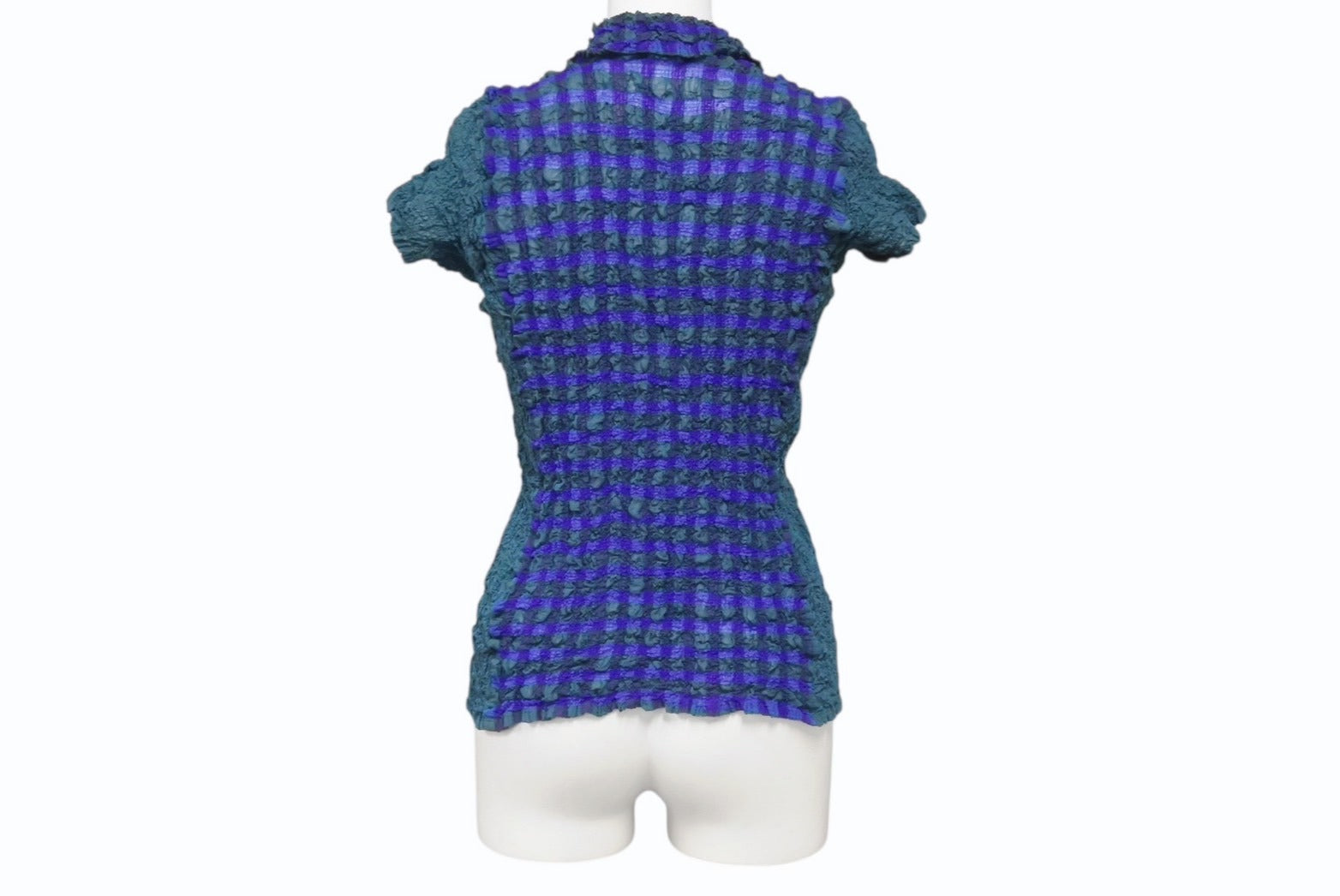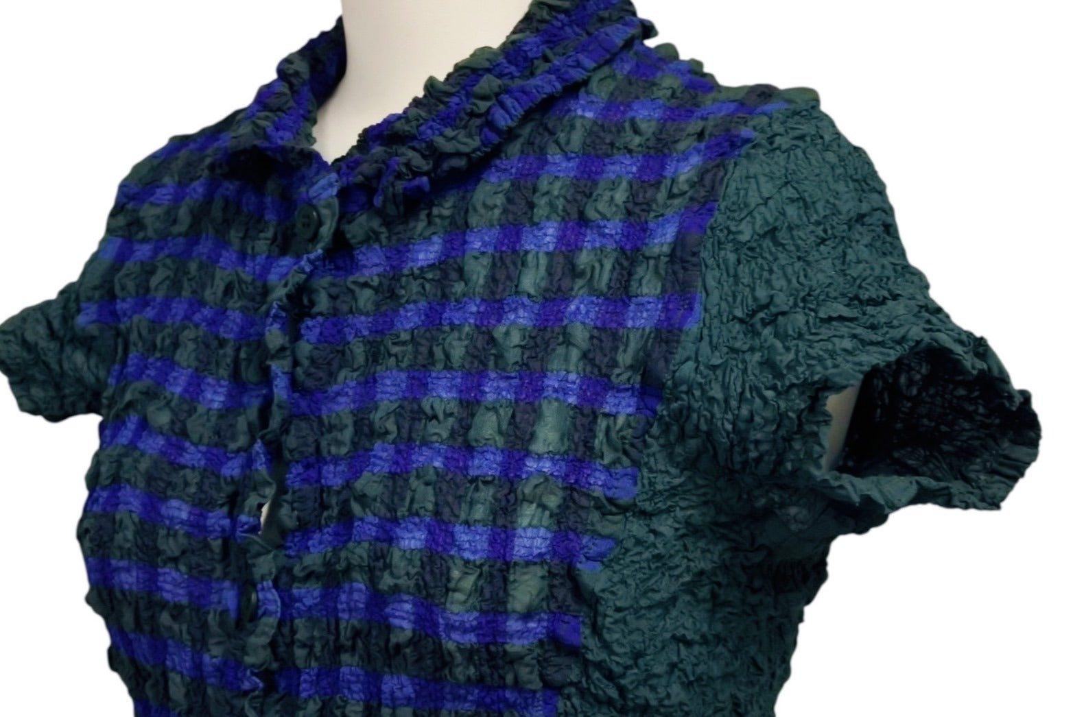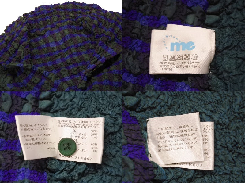 me ISSEY MIYAKE ミー イッセイミヤケ チェック柄 プリーツ加工 半袖シャツ MI02FK667 日本製 グリーン 美品 中古 4b003827