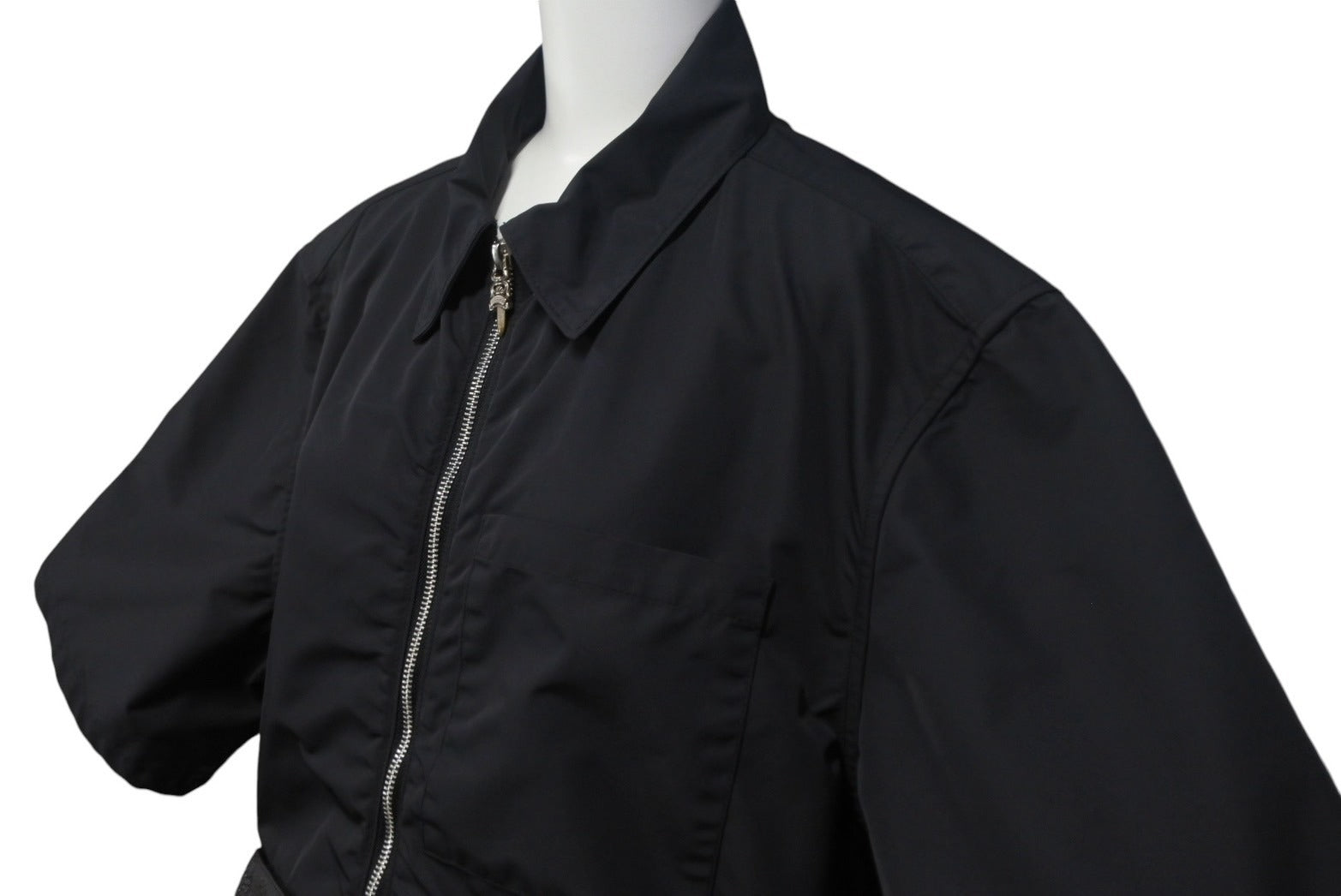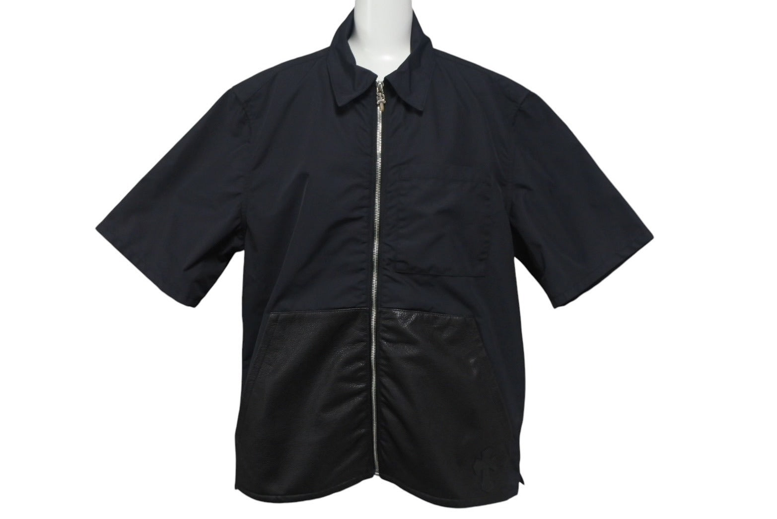 半袖シャツ CHROME HEARTS クロムハーツ CHクロスパッチ ダガージップアップシャツ Mサイズ ナイロン カーフスキン シルバ−925
