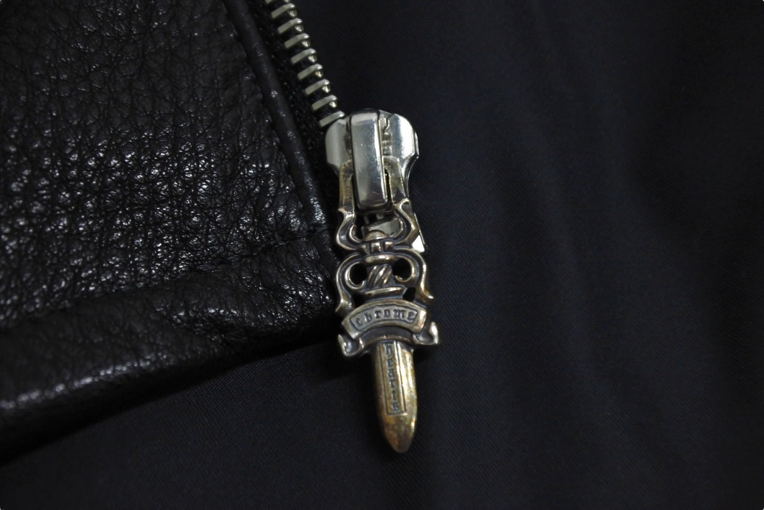 新品同様 CHROME HEARTS クロムハーツ CHクロスパッチ ダガージップアップシャツ サイズM ナイロン カーフスキン シルバ−925 中古 4c067999