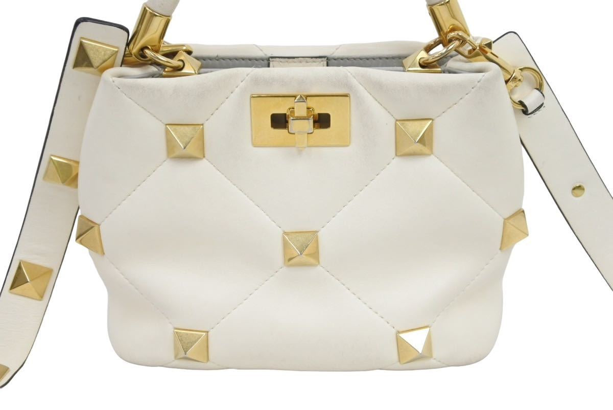 VALENTINO GARAVANI ヴァレンティノ ガラヴァーニ ローマンスタッズ ハンドバッグ ショルダーバック アイボリー 中古 44383