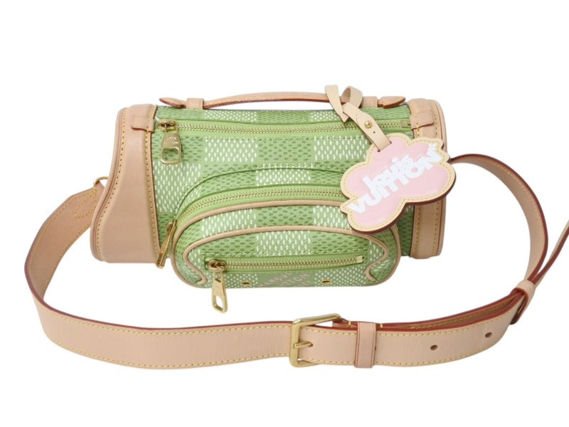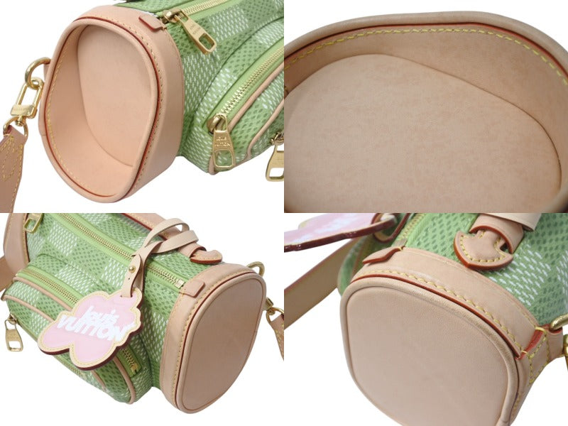 パイピングにスレあり。底面にスレ、薄じみあり。表面ヌメ革箇所にシミあり。金具に僅かに小傷あり。その他使用感少なく極美品です。