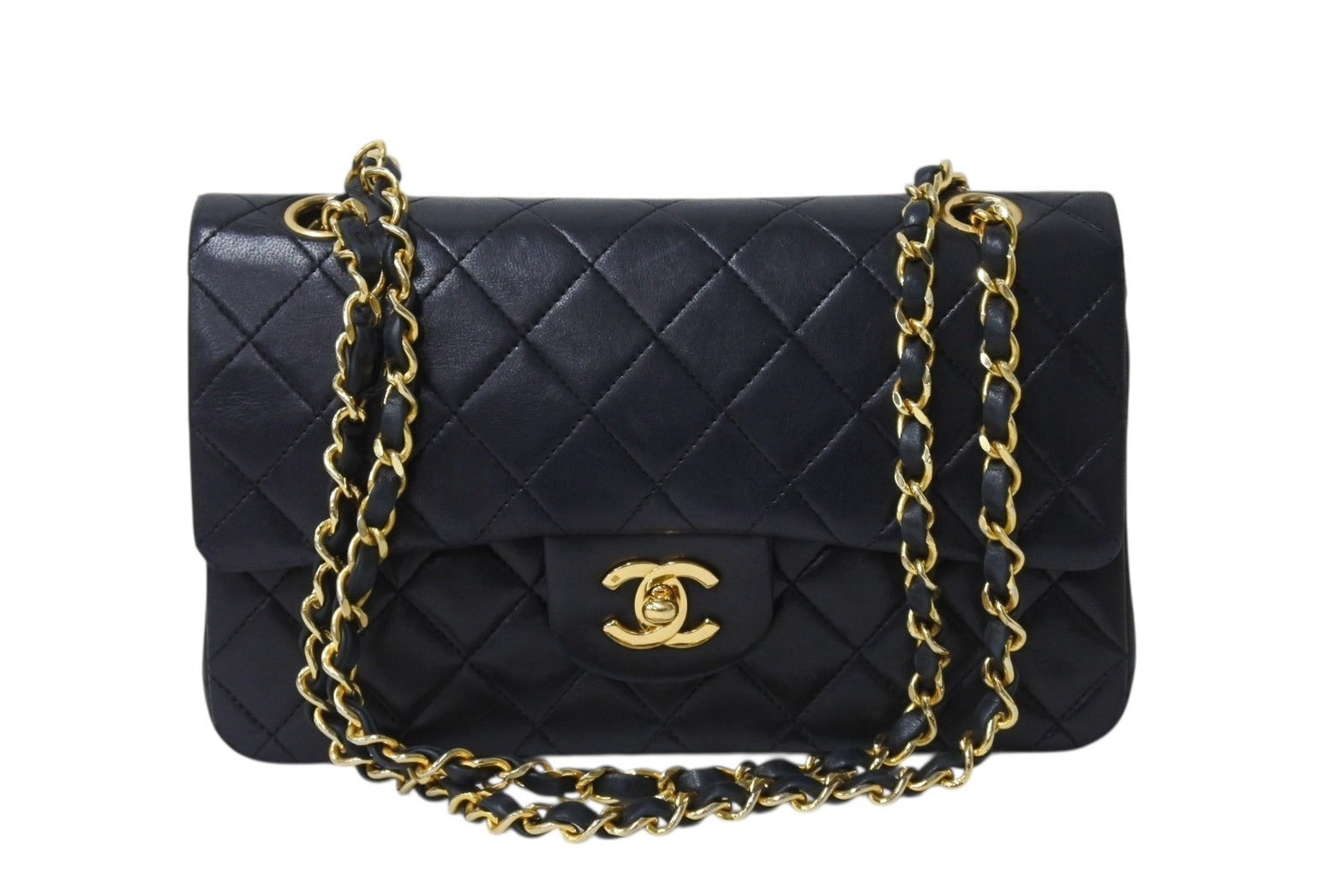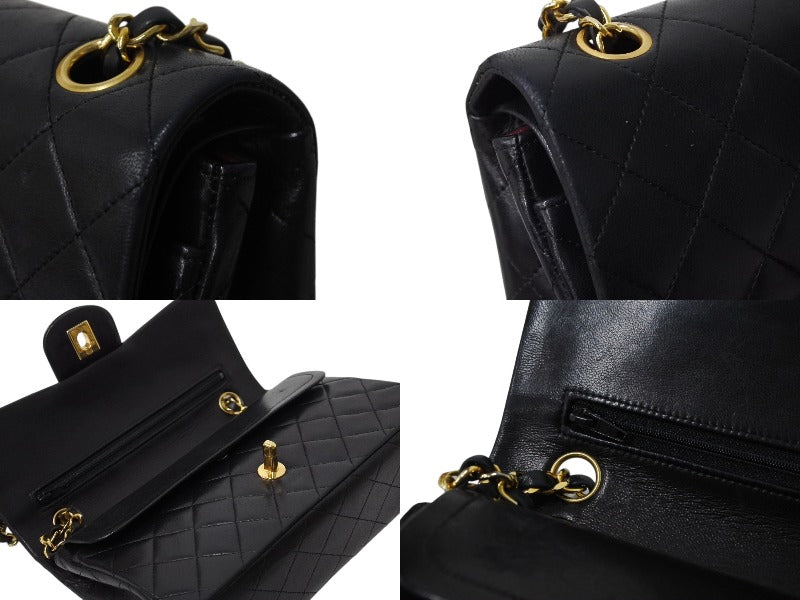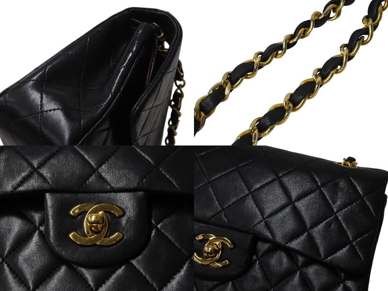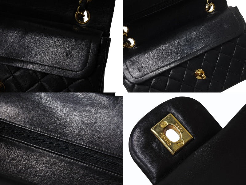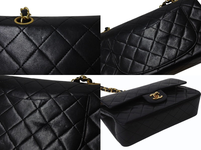 CHANEL シャネル マトラッセ23 Wフラップ Wチェーンショルダーバッグ 0番台 ココマーク ラムスキン ブラック ゴールド金具 美品 中古 4b004172