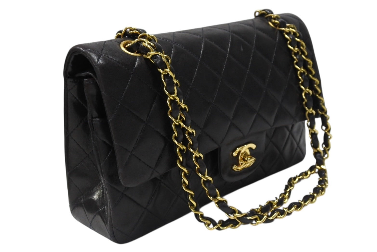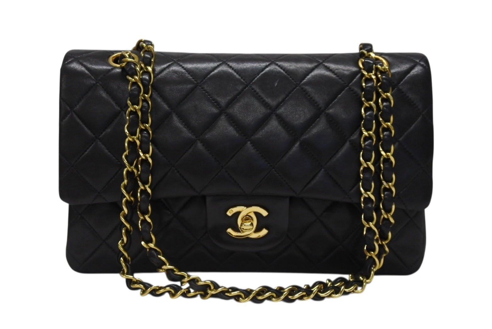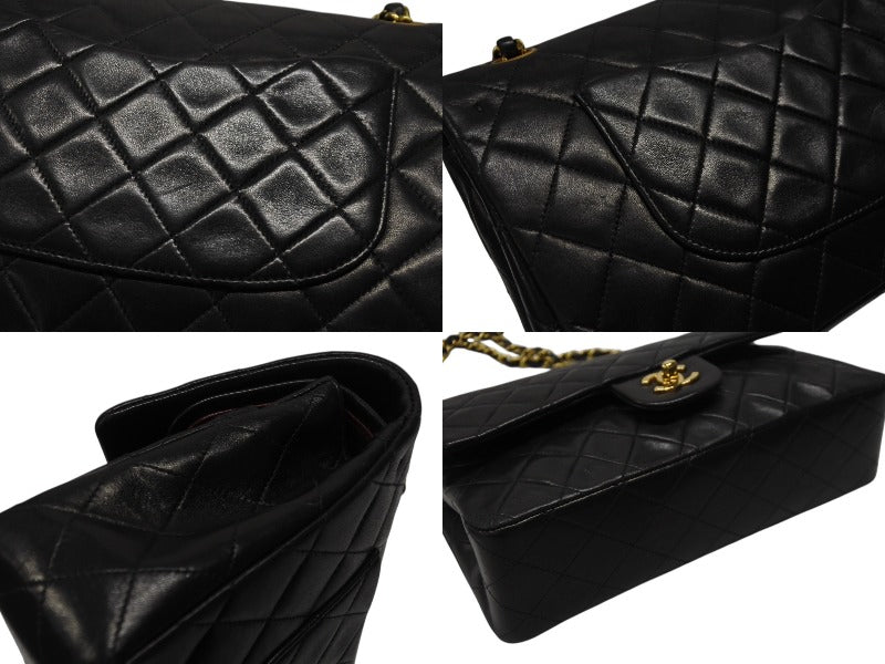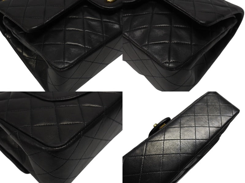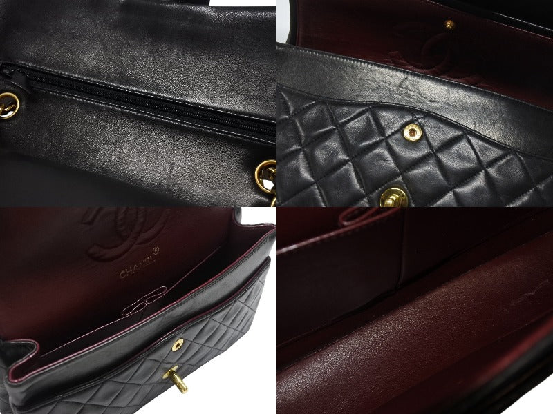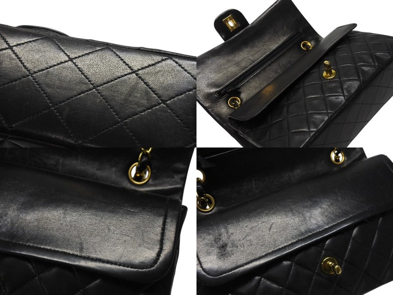 CHANEL シャネル マトラッセ25 Wフラップ Wチェーンショルダーバッグ 3番台 ココマーク ラムスキン ブラック 美品 中古 4b004206