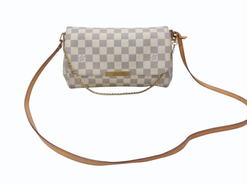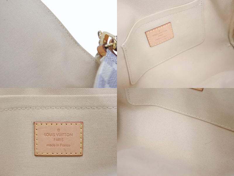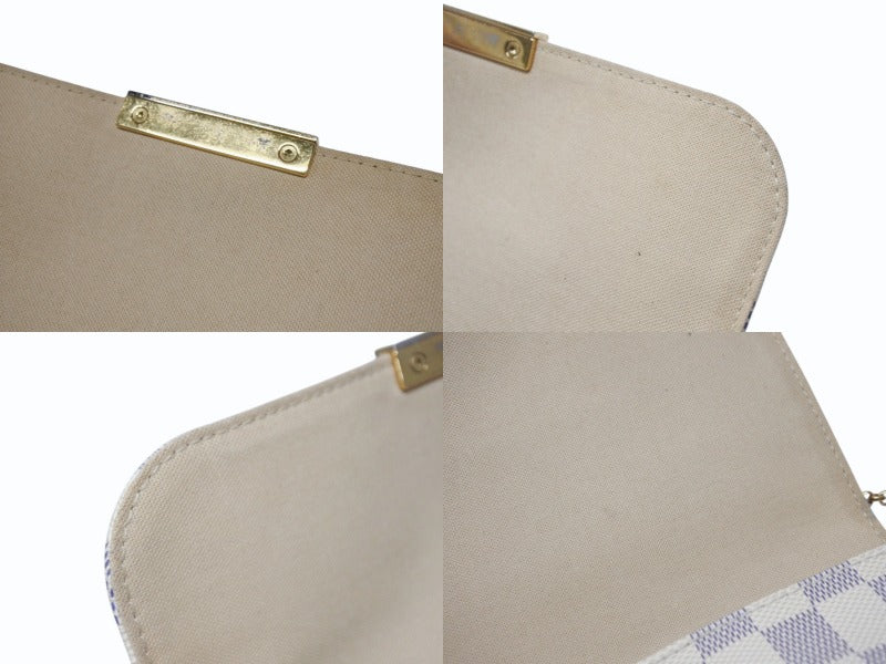 ダミエ・アズールラインの様々なシーンで使えるピュアでフェミニンなシェイプのクラッチバッグ。マグネット開閉式で中身の取り出しが簡単。取り外し可能なレザーとゴールドチェーンの2種類のストラップ付。
