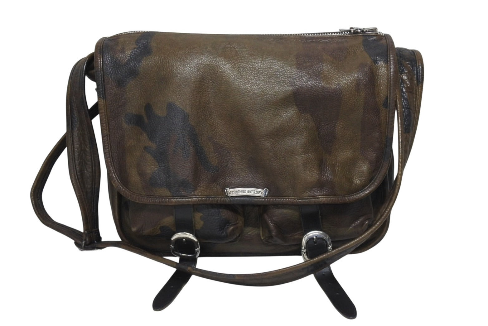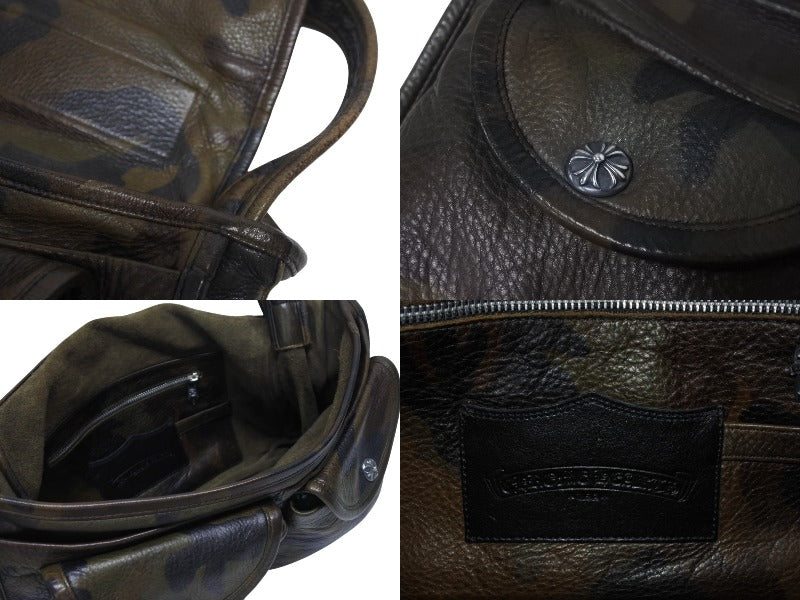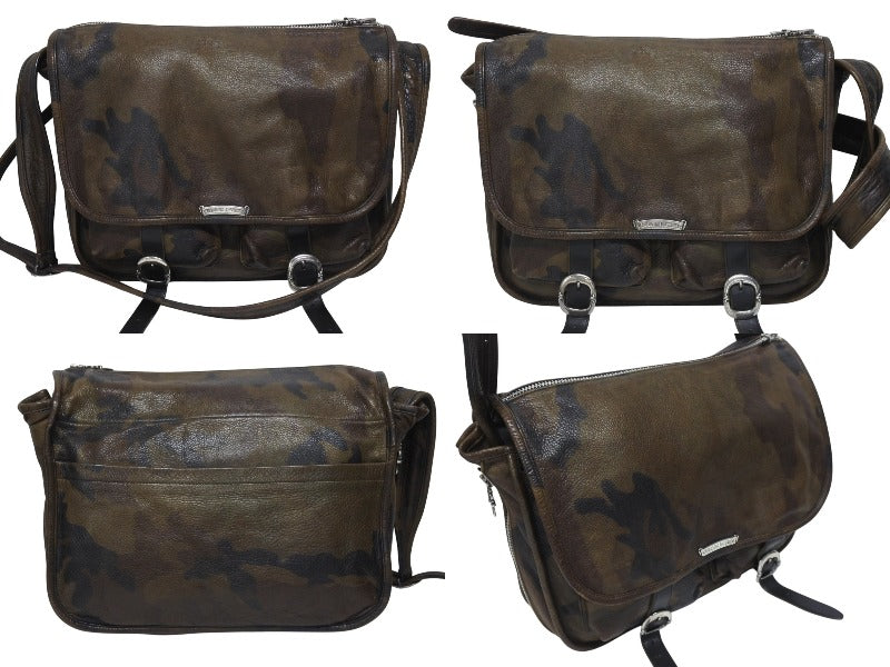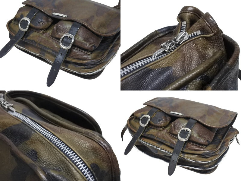 カモフラ柄のメールバッグです。シルバーパーツがアクセントになっており、品と高級感のあるアイテムです。容量も大きく、デイリーにお使いいただけます。