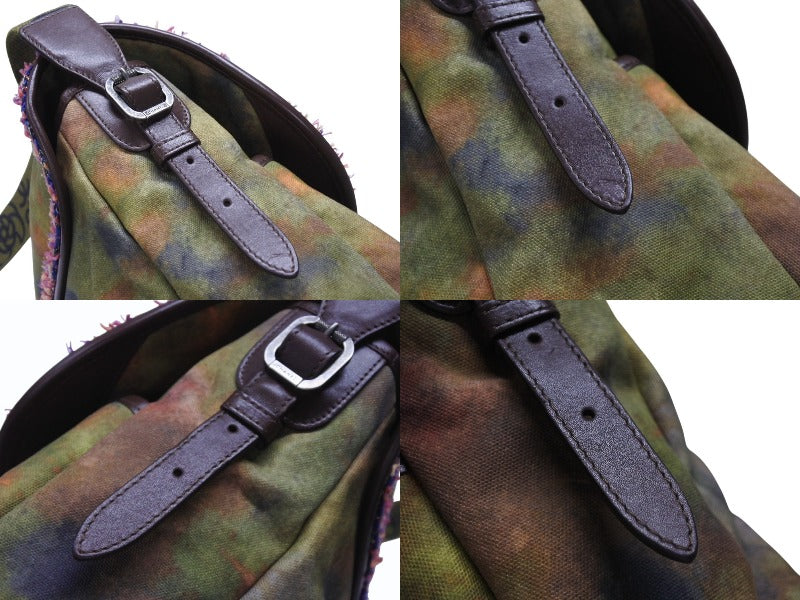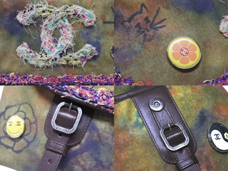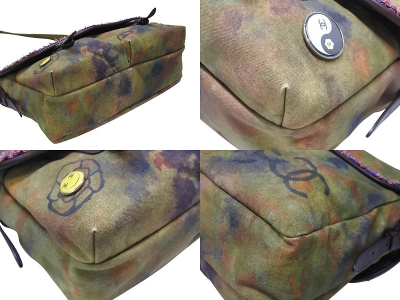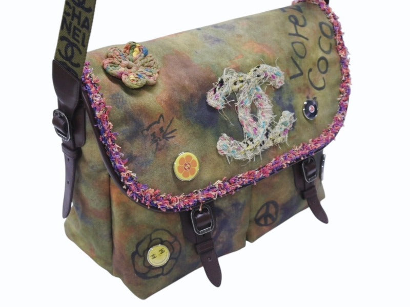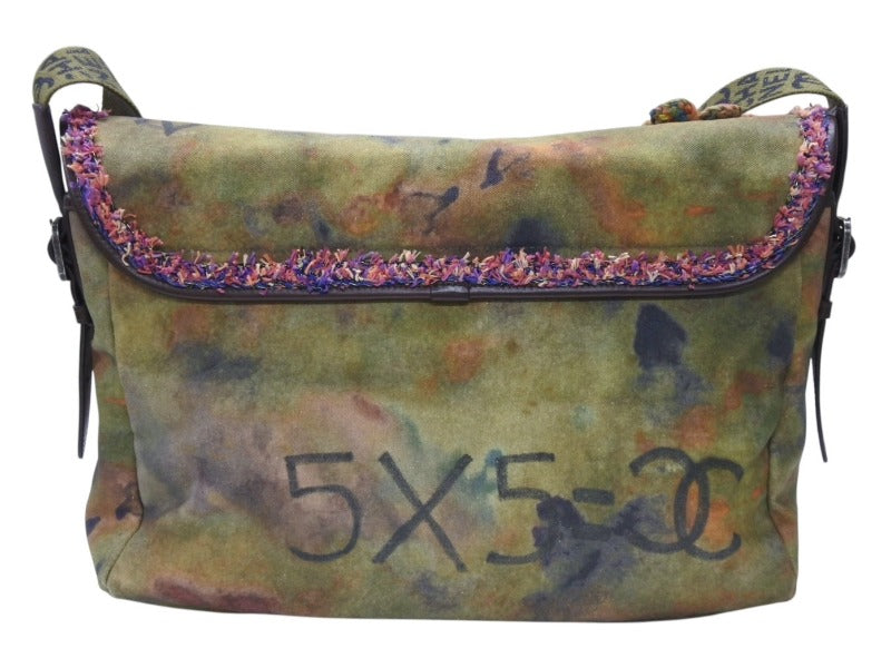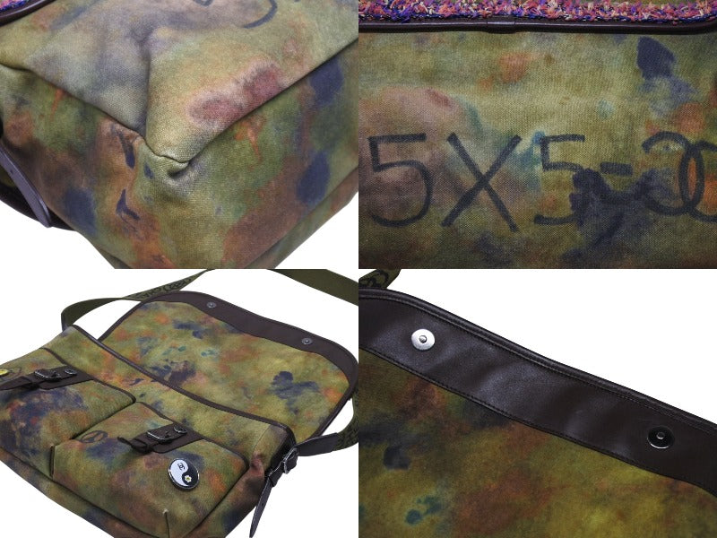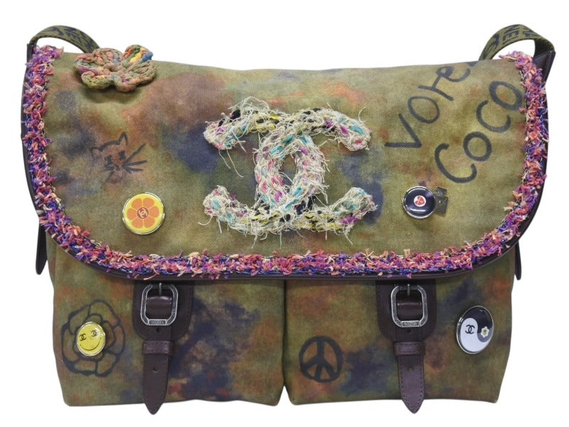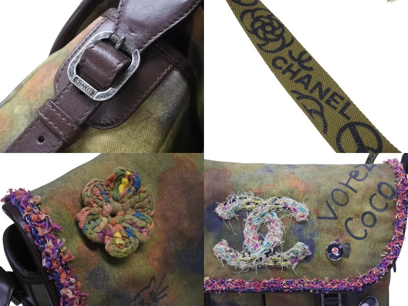 極美品 CHANEL シャネル エンブロイダリー メッセンジャーバッグ 21番台 A92790 グラフィティ カーキ ココマーク 中古 4b006551