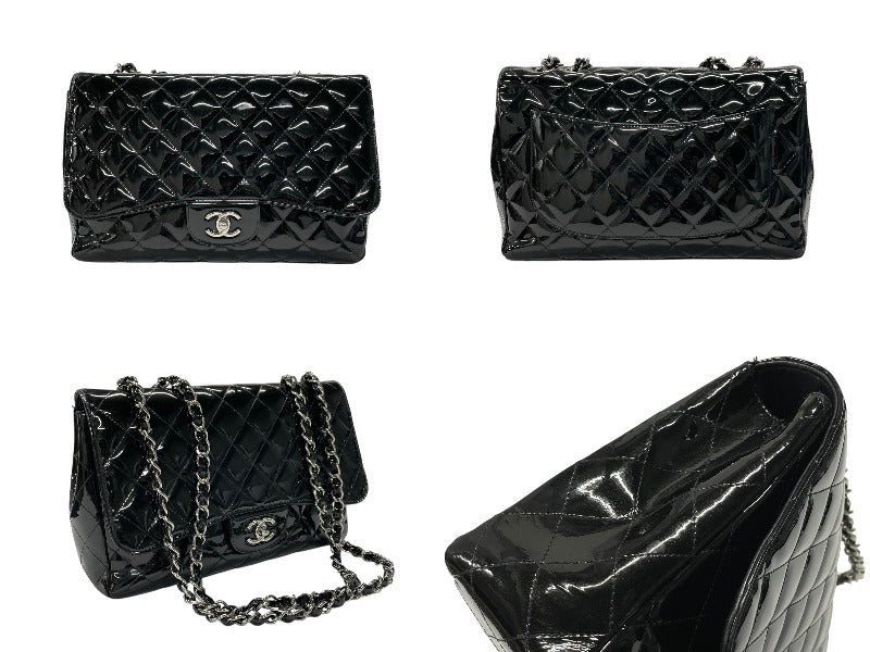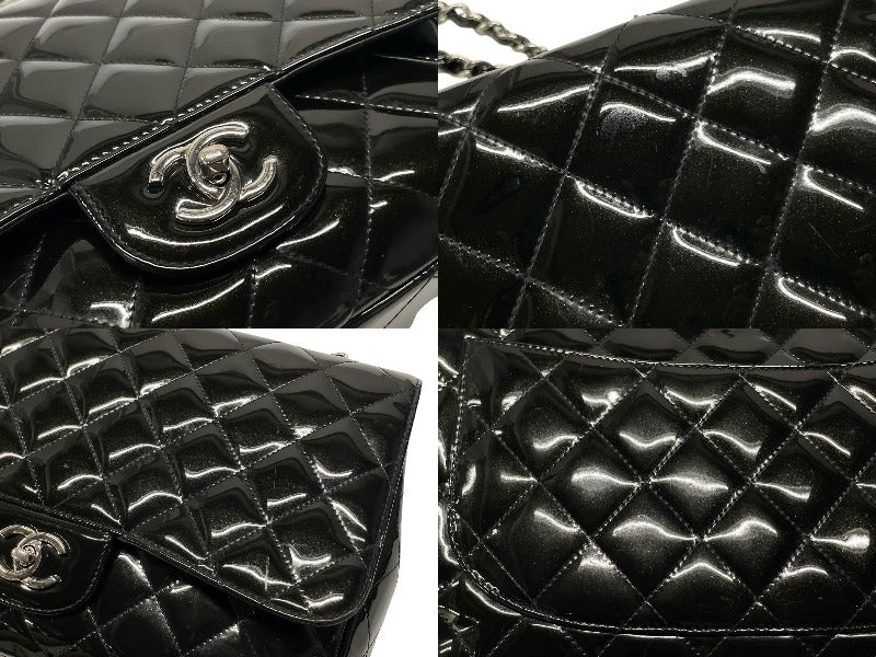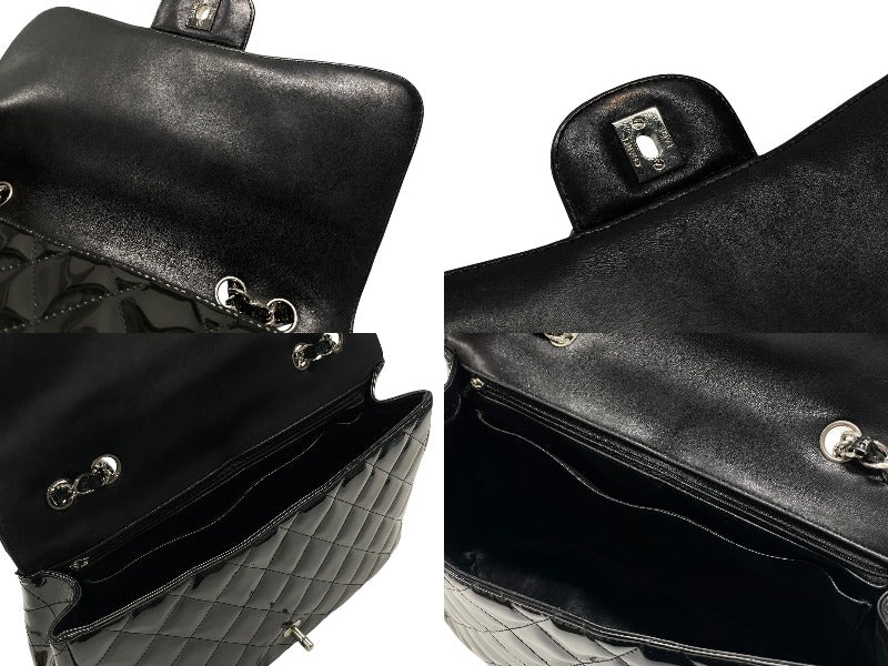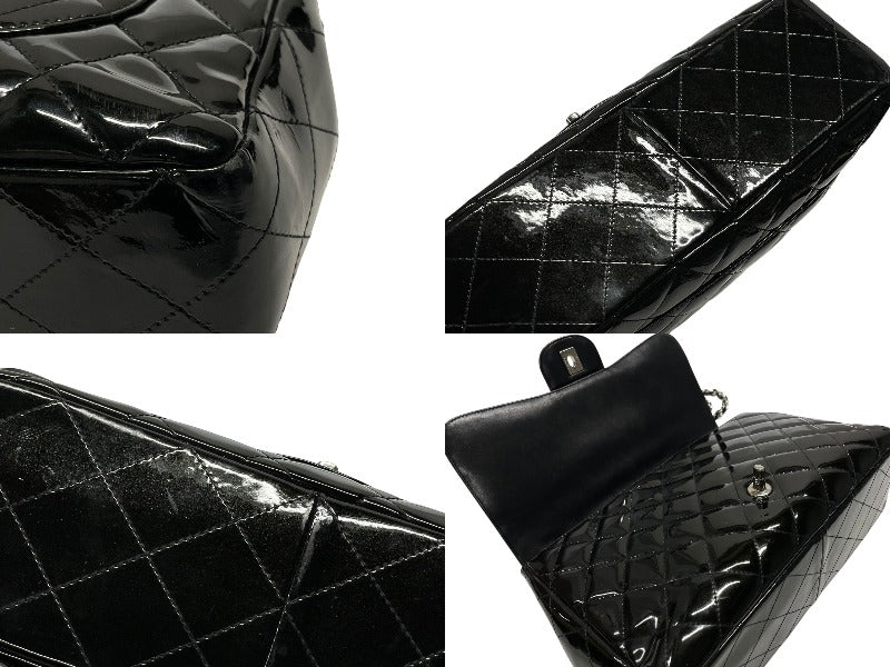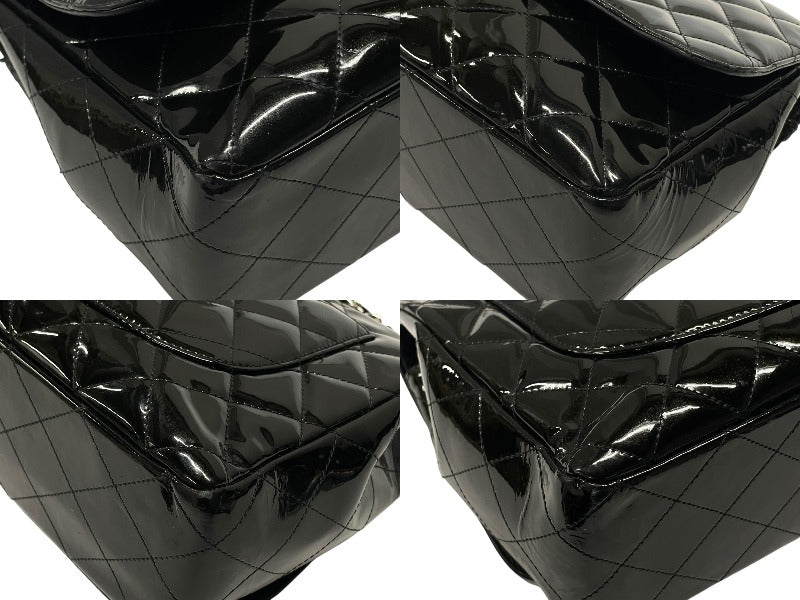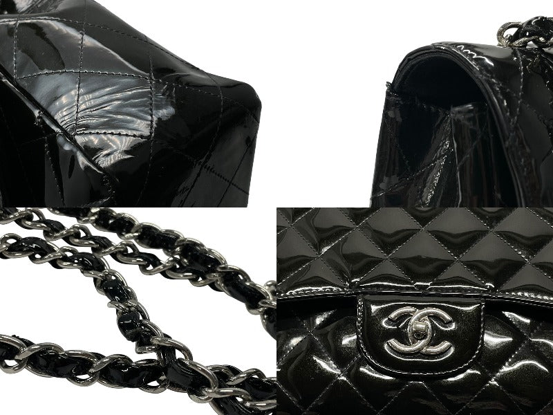CHANEL シャネル デカマトラッセ30 Sフラップ Wチェーンショルダーバッグ 19番台 A58600 パテントレザー ブラック 美品 中古 4b007364