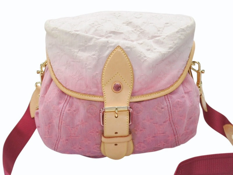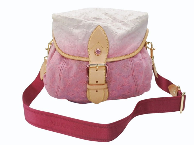 極美品 LOUIS VUITTON ルイヴィトン ショルダーバッグ モノグラムデニムサンシャイン M93183 ピンク ホワイト ゴールド金具 中古 4b007598