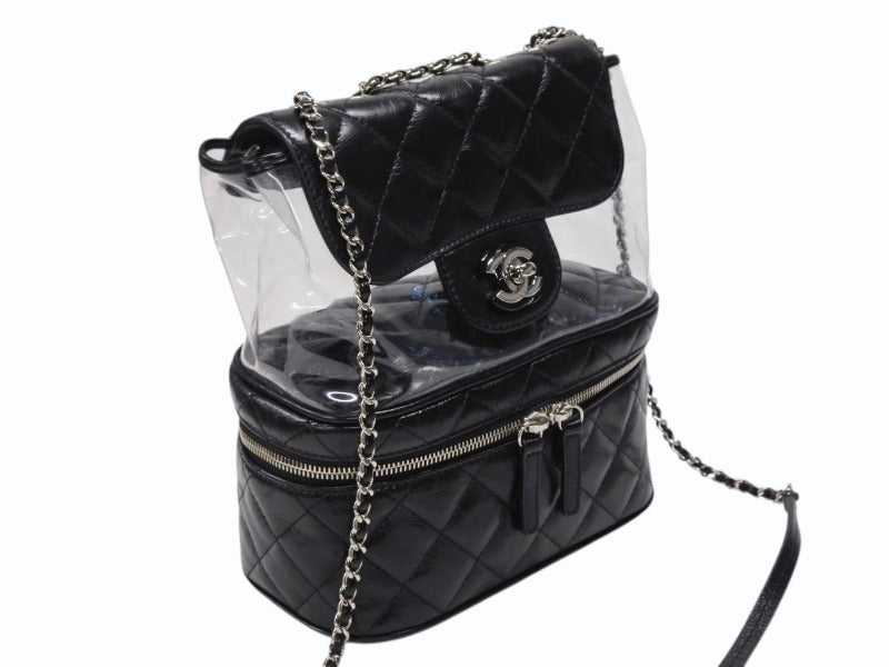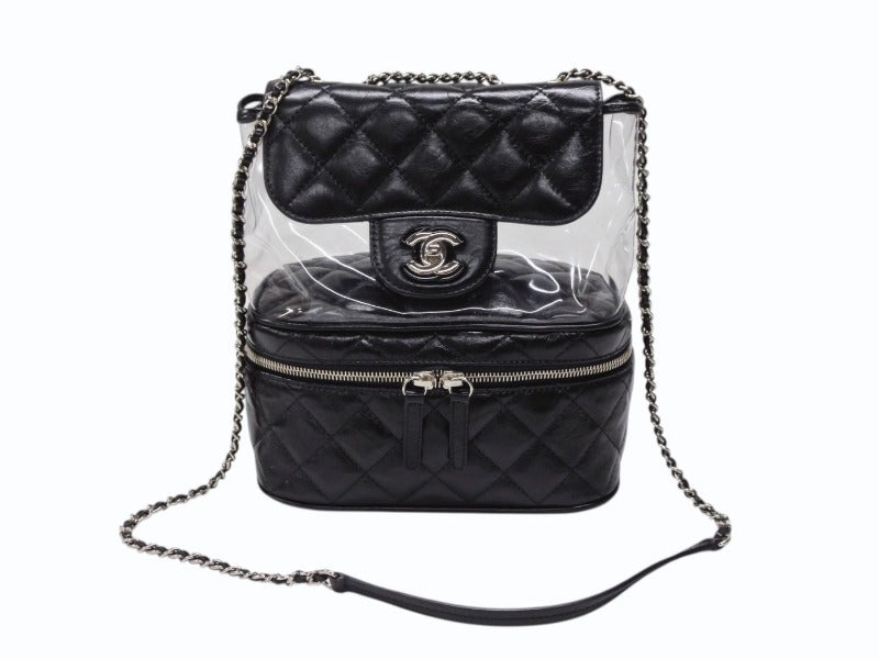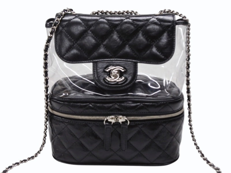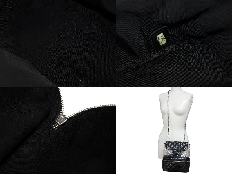 極美品 CHANEL シャネル チェーンショルダーバッグ A57826 25番台 ココマーク キルティング カーフスキン PVC ブラック シルバー金具 中古 4b007743