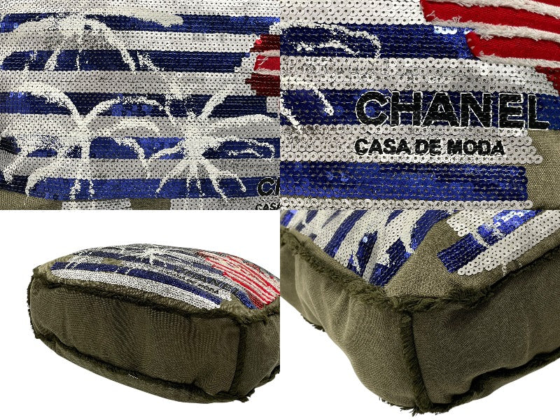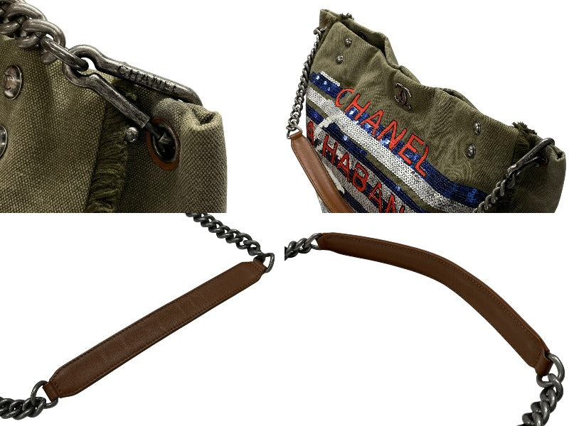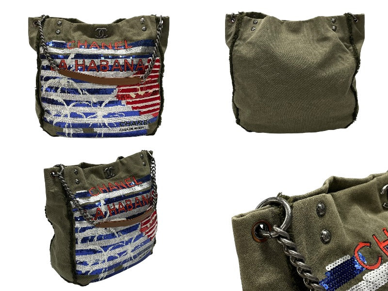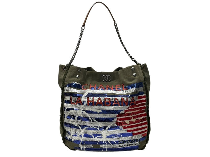 極美品 CHANEL シャネル クルーズライン LA HABANA ハバナ チェーンワンショルダーバッグ A93674 23番台 スパンコール カーキ 中古 4b007881