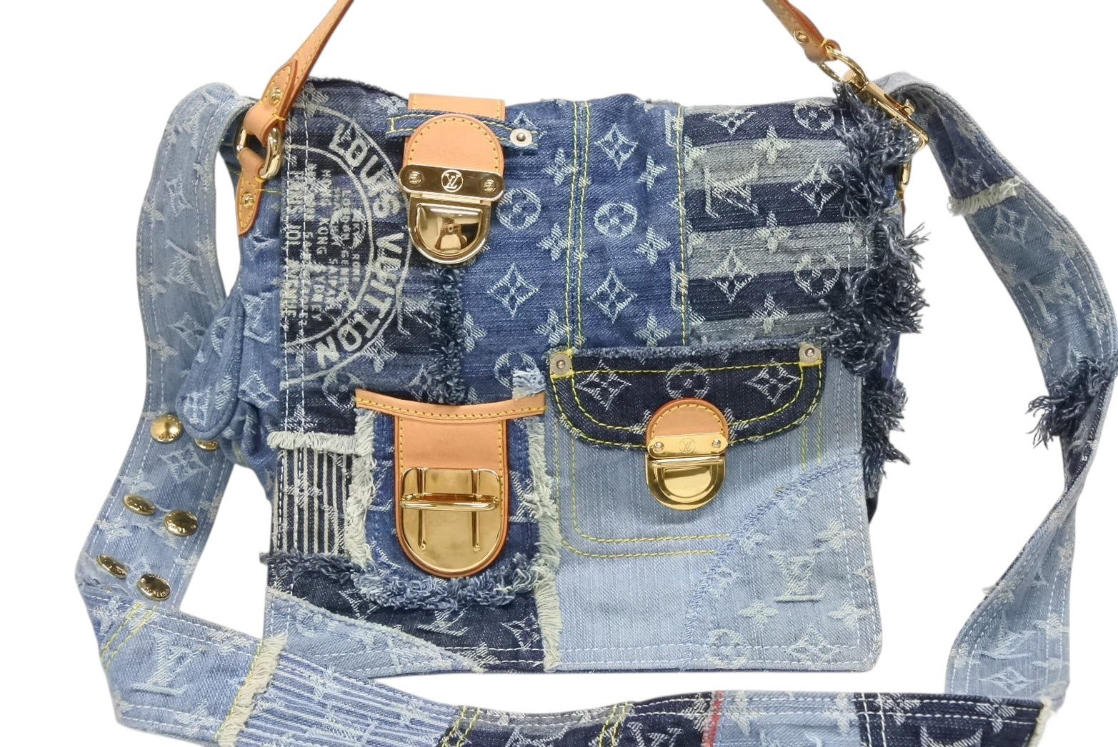 極美品 LOUIS VUITTON ルイヴィトン パッチワーク ポスティ メッセンジャーバッグ M95374 モノグラムデニム ブルー 中古 4b008049