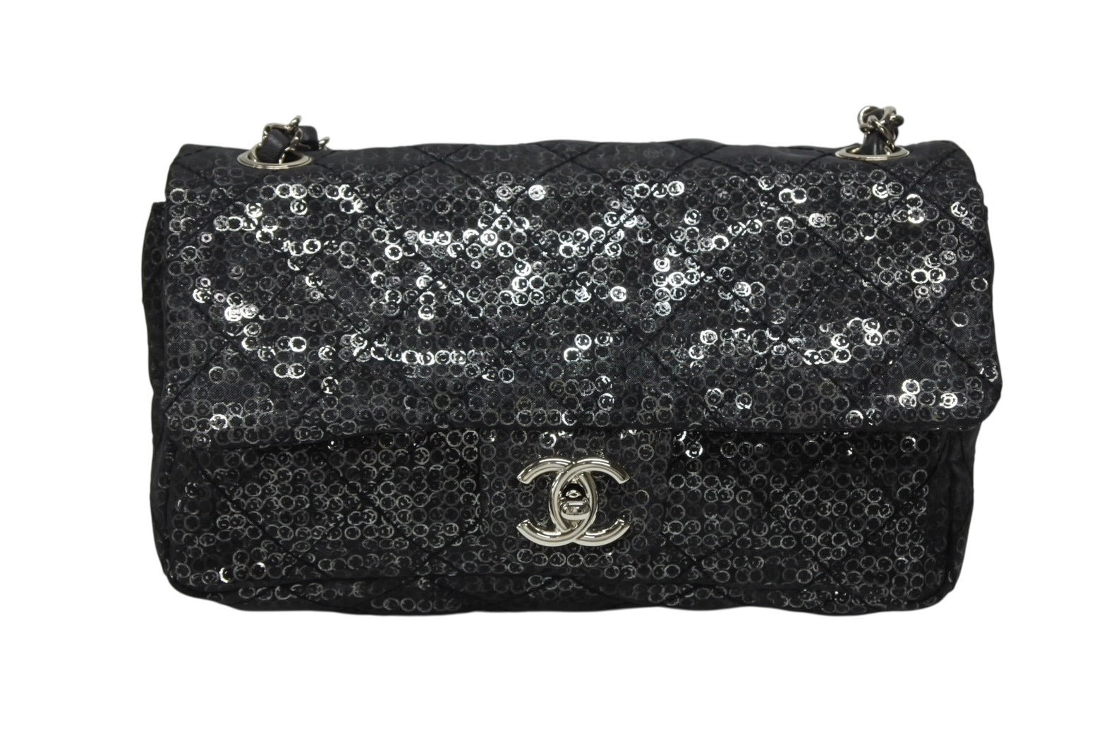極美品 CHANEL シャネル マトラッセ23 Sフラップ Wチェーンショルダーバッグ 12番台 ココマーク スパンコール シルバー金具 中古 4b008075