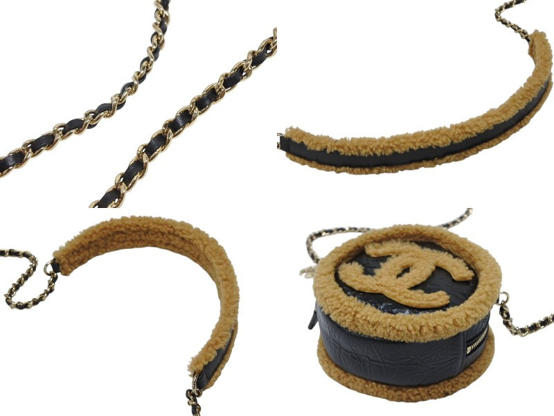 極美品 CHANEL シャネル シアリング ラウンドチェーンショルダーバッグ 28番台 ココマーク ブラック ブラウン ゴールド金具 中古 4b008494