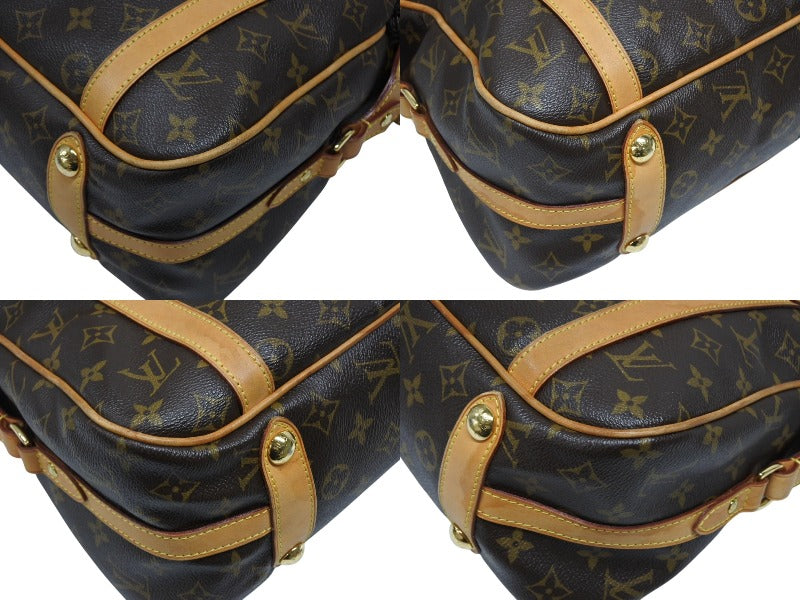 ヌメ革部分全体的ににヤケ、シミ、スレあり。ハンドル部分に歪みあり。内側にスレ、汚れあり。中古品としてご使用いただける状態です。