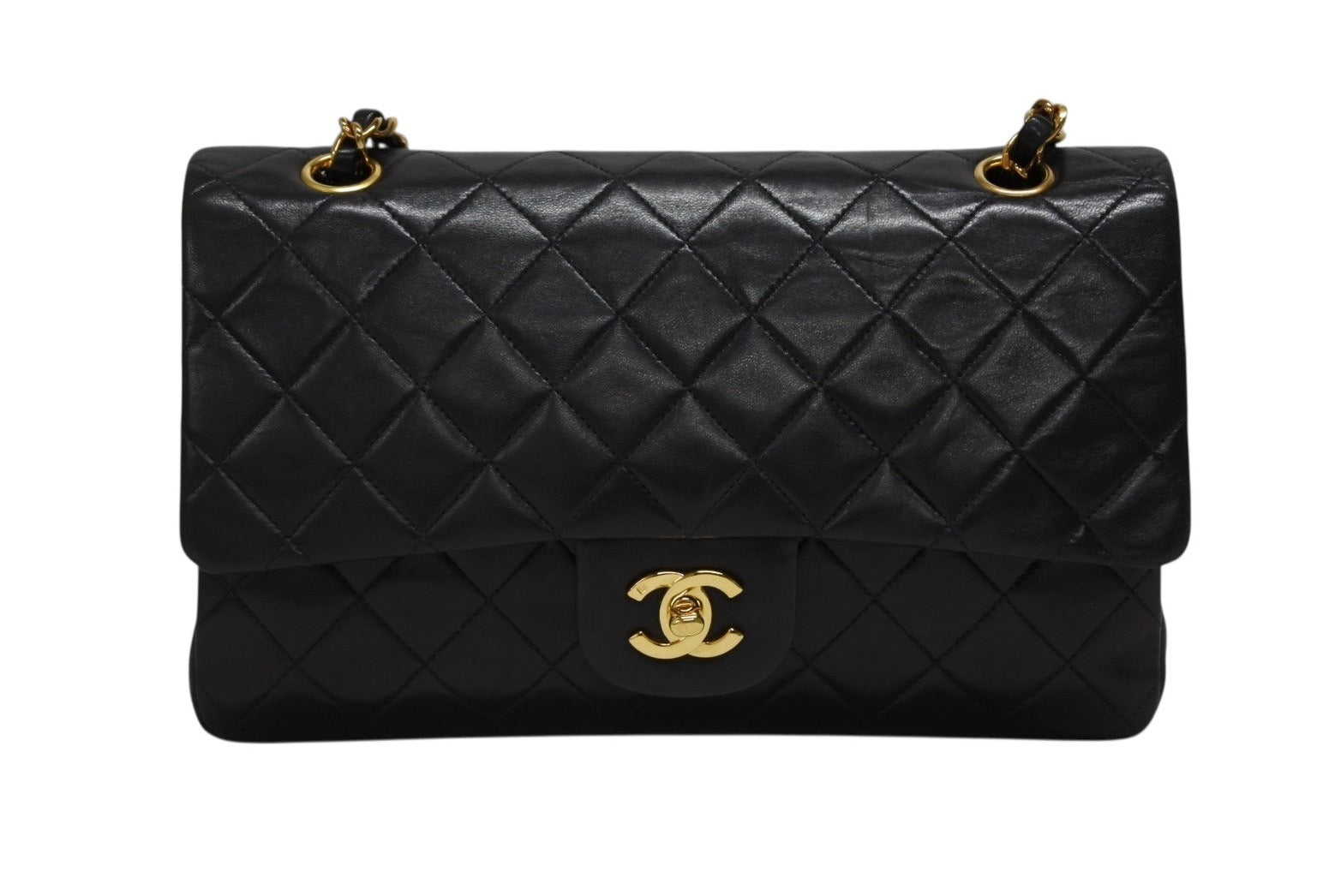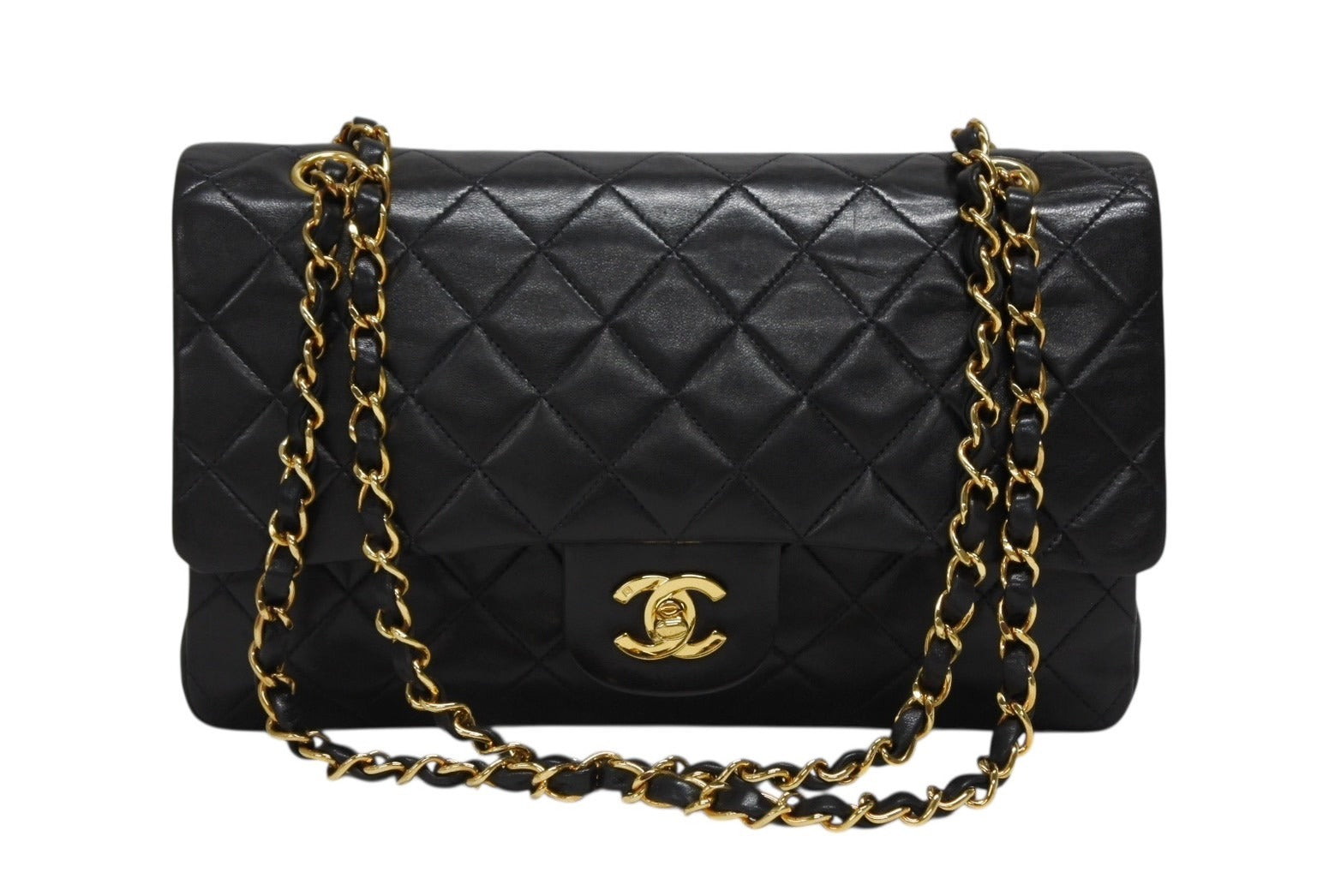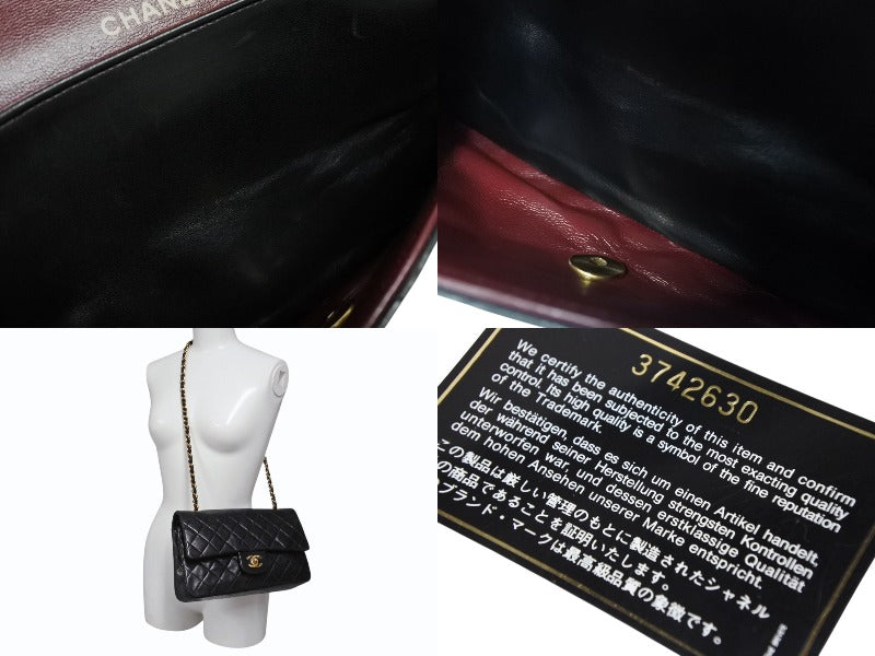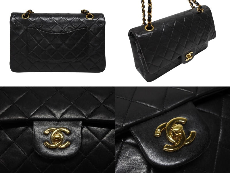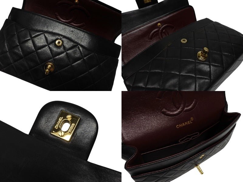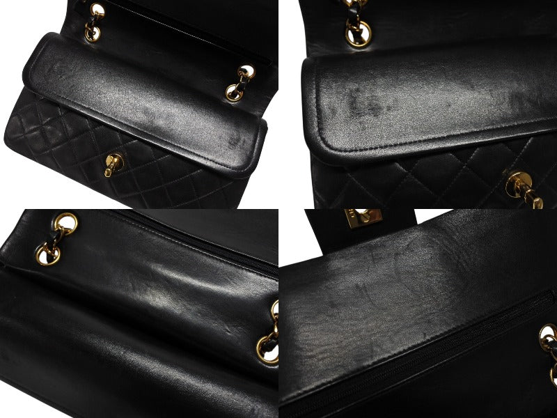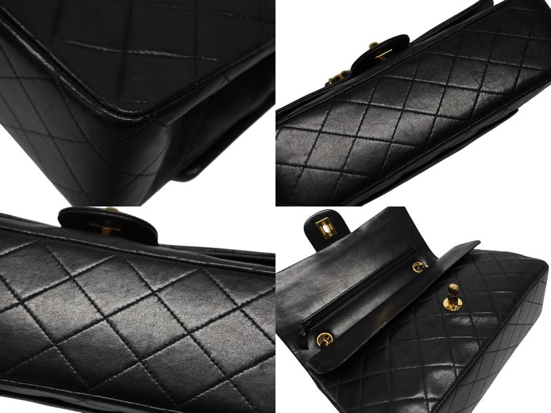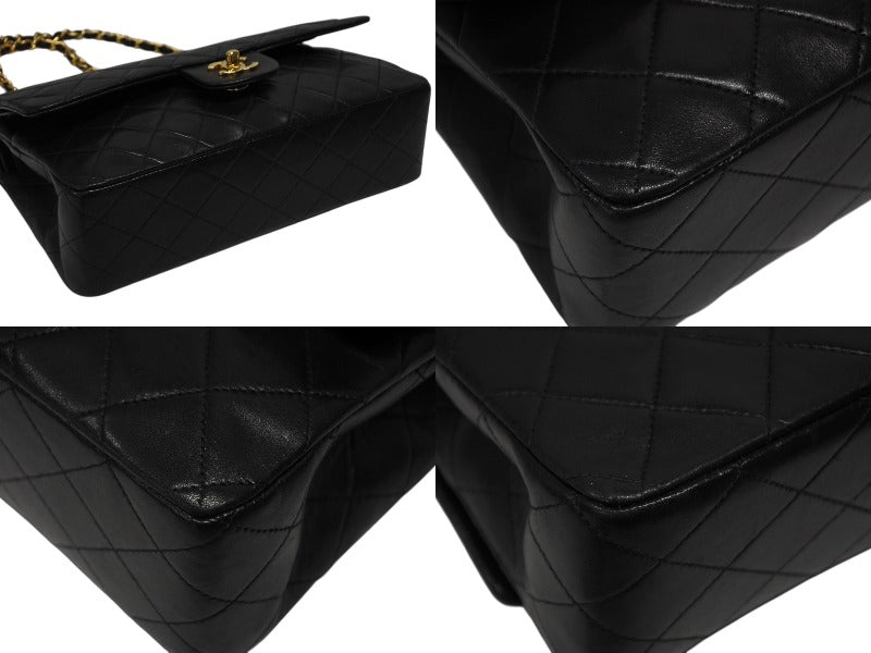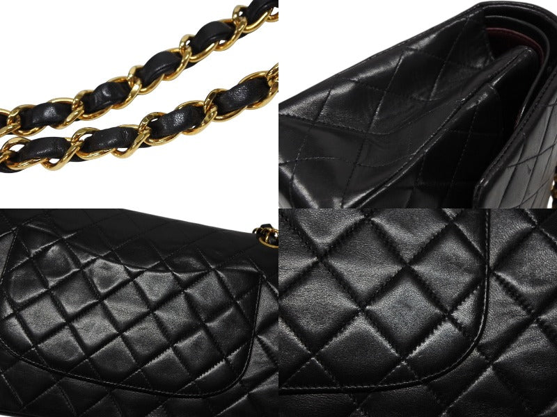 極美品 CHANEL シャネル マトラッセ25 Wフラップ Wチェーンショルダーバッグ 3番台 ラムスキン ココマーク ブラック ゴールド金具 中古 4b009163