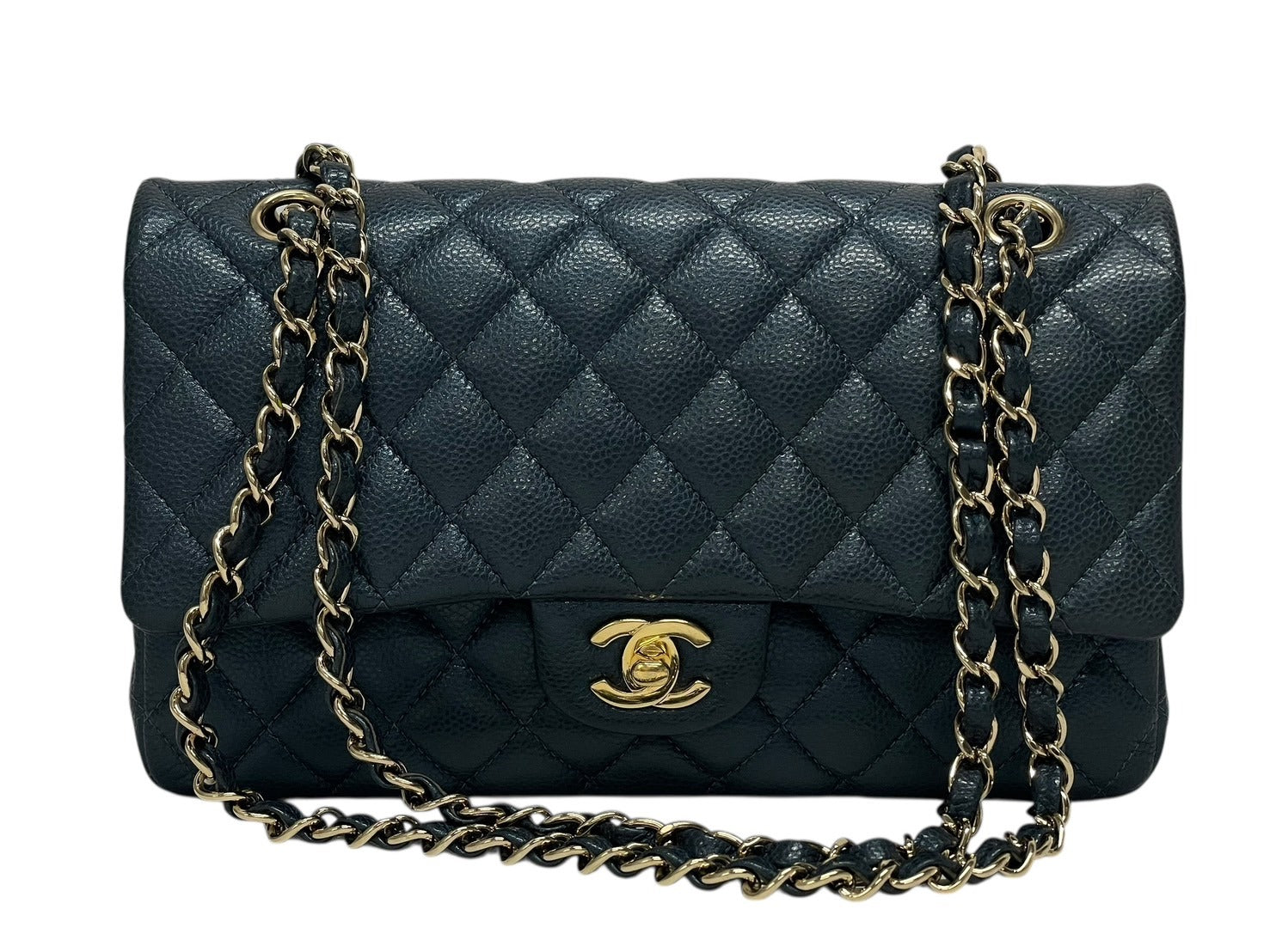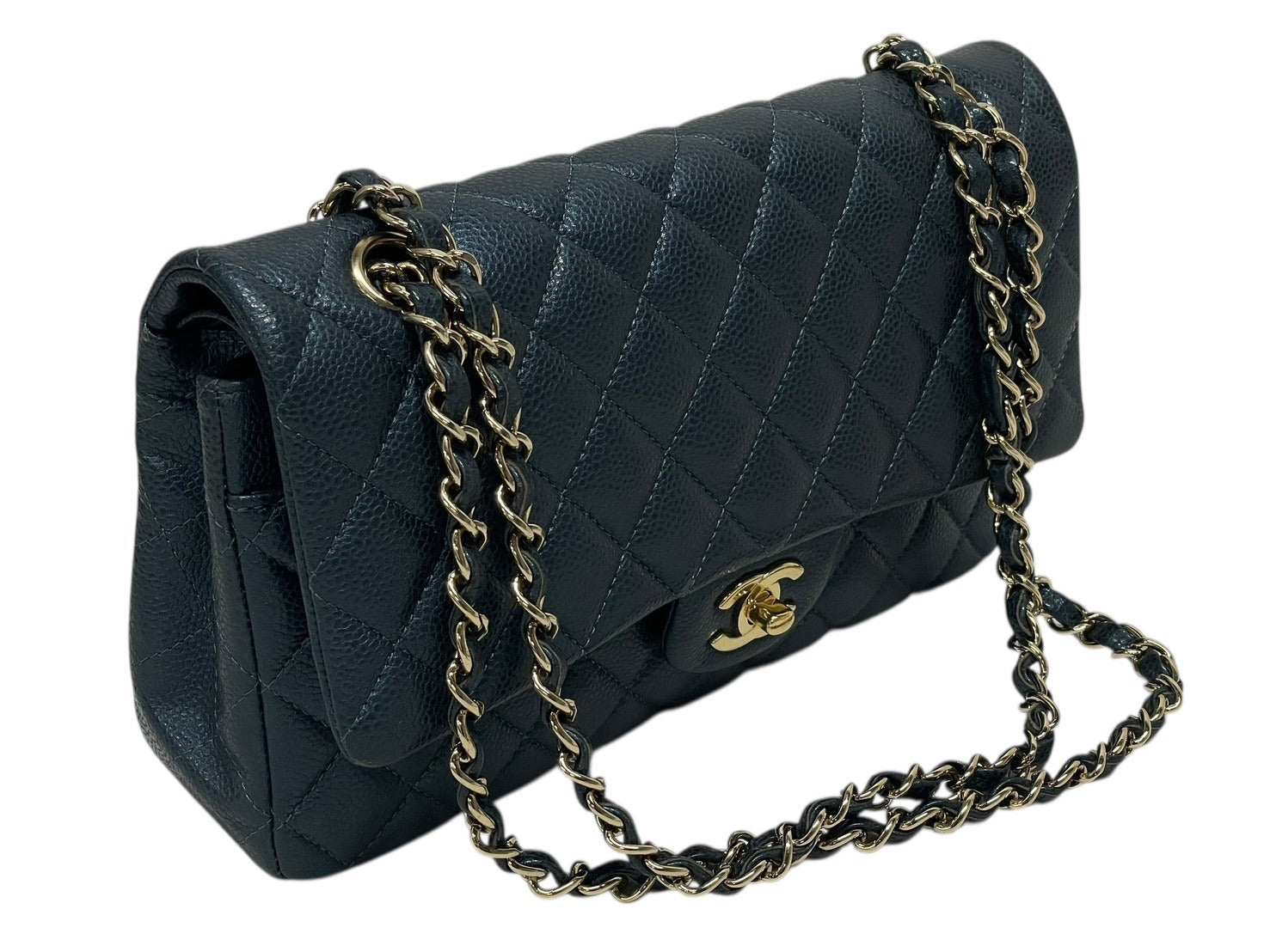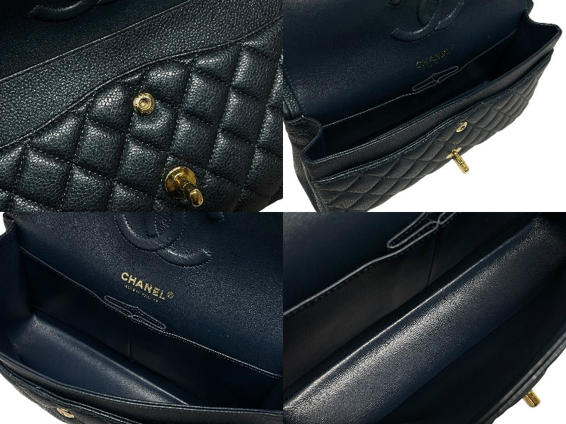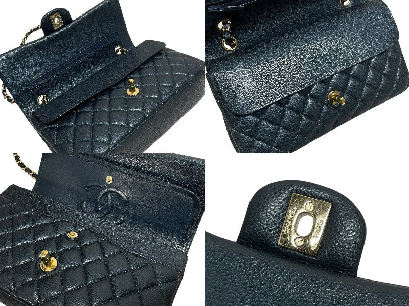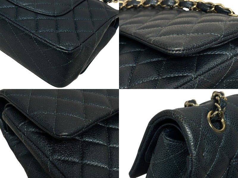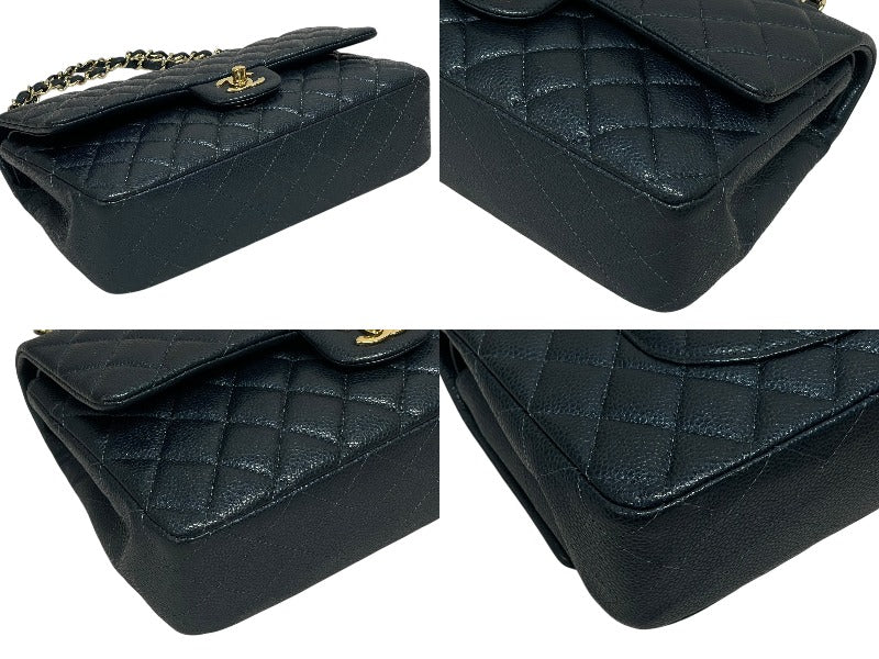 CHANEL シャネル マトラッセ25 Wフラップ Wチェーンショルダーバッグ 26番台 キャビアスキン ココマーク ゴールド金具 美品 中古 4b009613