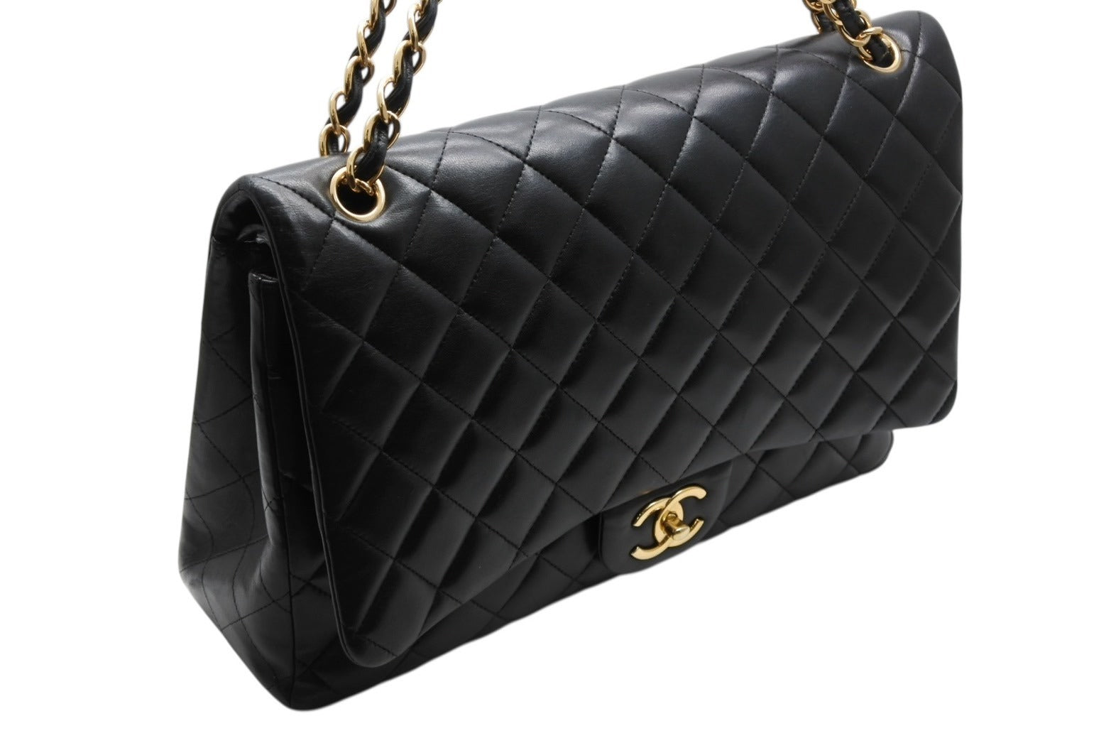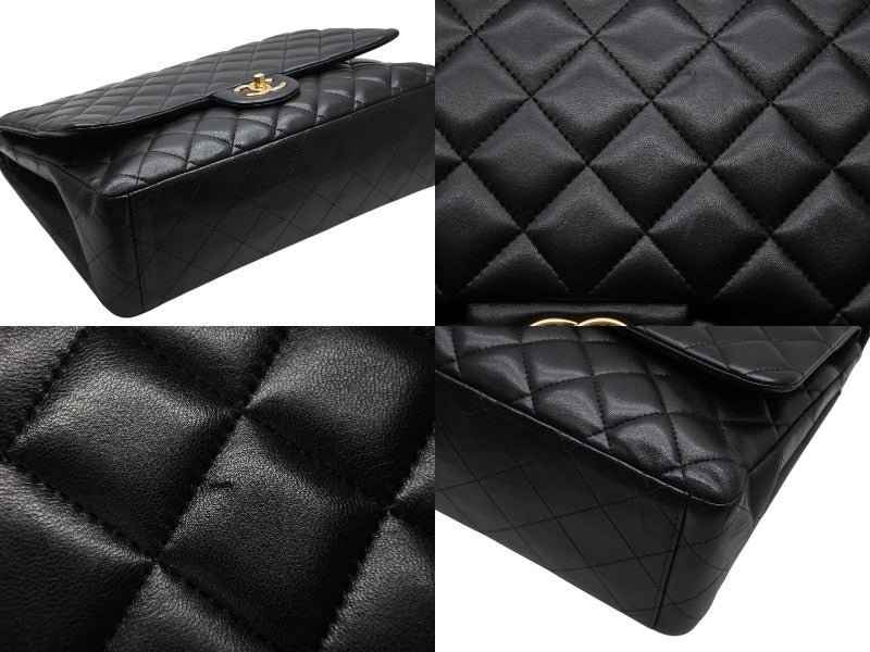 極美品 CHANEL シャネル マトラッセ33 Wフラップ Wチェーン ショルダーバッグ 15番台 ラムスキン ブラック ゴールド金具 中古 4b010200