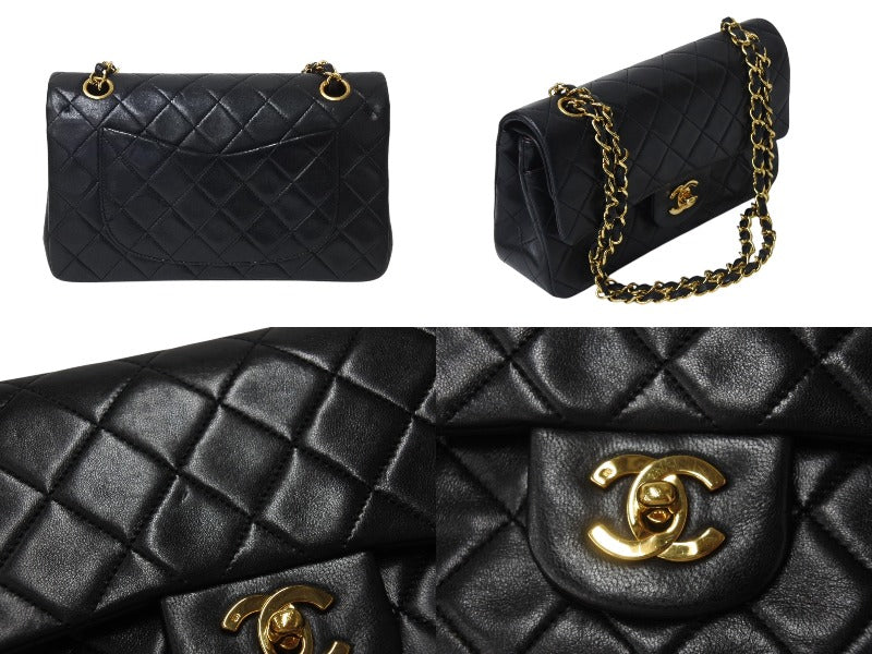 CHANEL シャネル マトラッセ23 Wフラップ チェーン ショルダーバッグ ラムスキン 1番台 ブラック ゴールド金具 美品 中古 4c070383