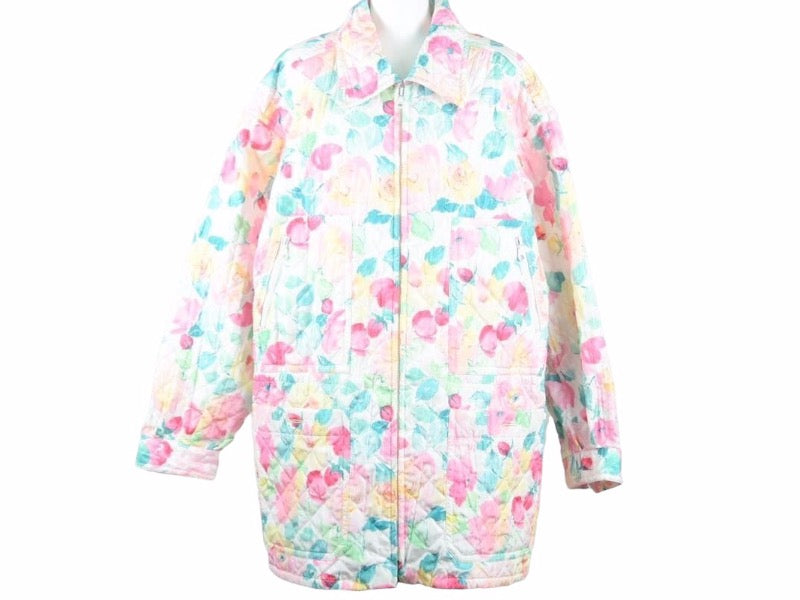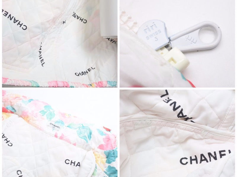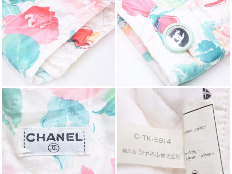 CHANEL シャネル ヴィンテージ モッズコート ジャケット フラワー 総柄ブルゾン ココマーク ナイロン レディース 良好 30735