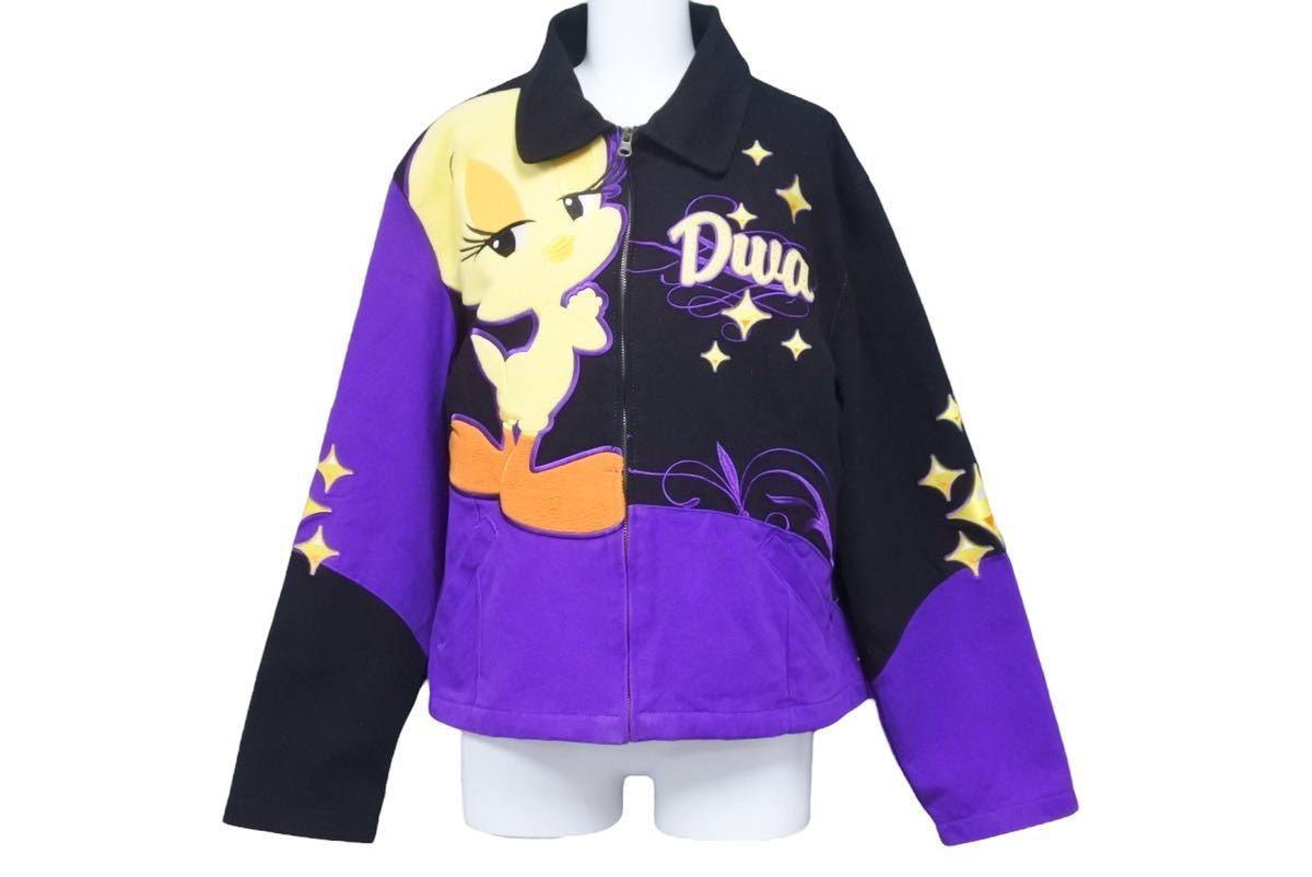 JH DESIGN ジェイエイチデザイン Tweety ブルゾンジャケット レーシングジャケット ブラック パープル 2XL 良品 中古 48519