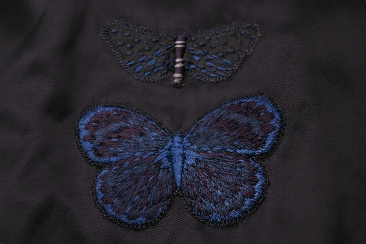 フロントと後ろ蝶の刺繡が入ってオシャレなアイテムです。