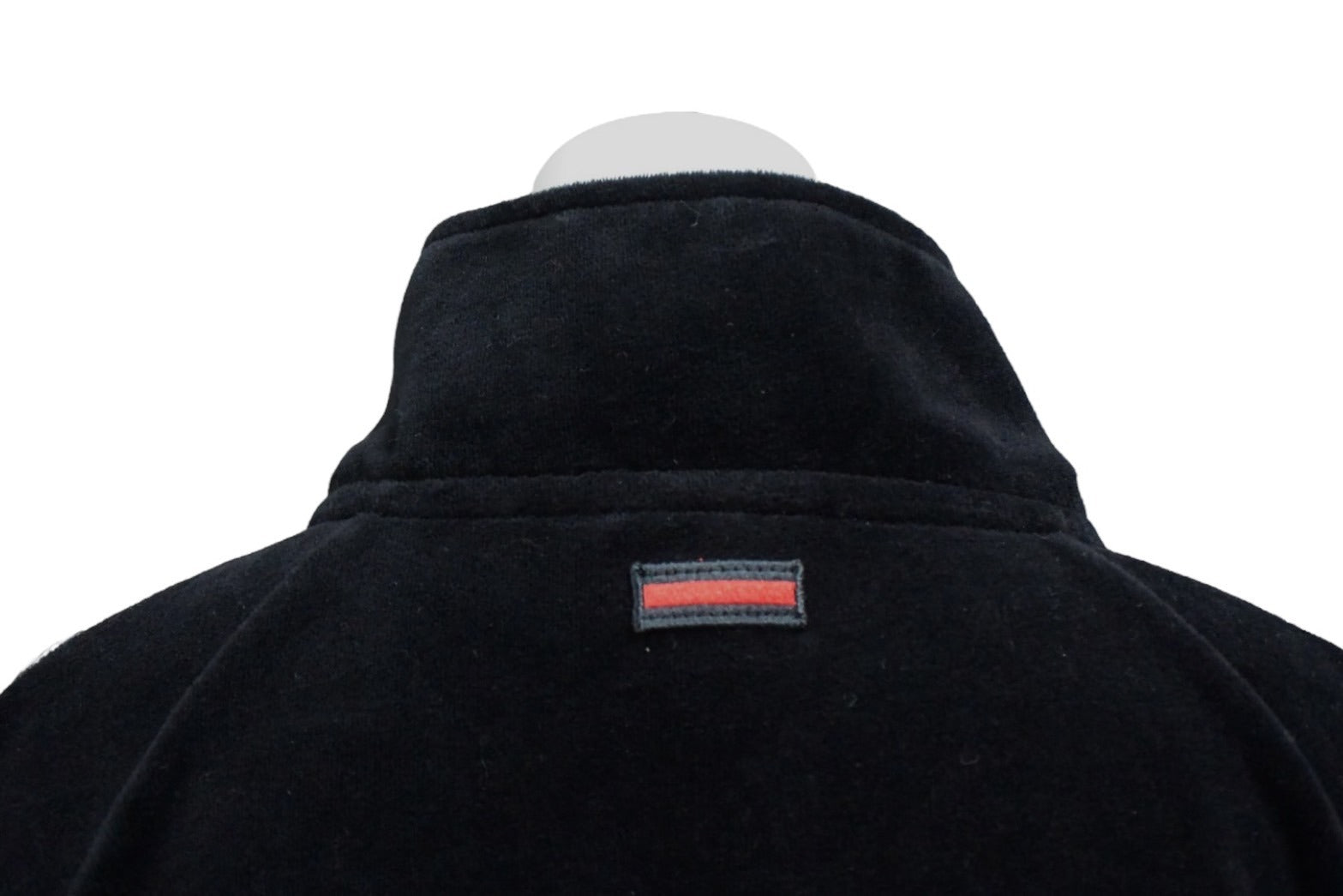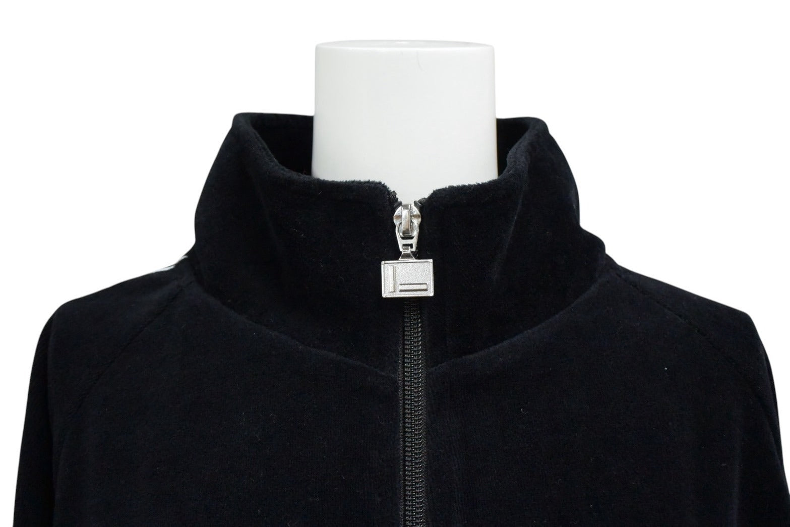 柔らかく滑らかで快適な履き心地のベロア素材を使用、左胸のブランドロゴと、両腕のロゴテープがポイント、ハイネックデザイン。