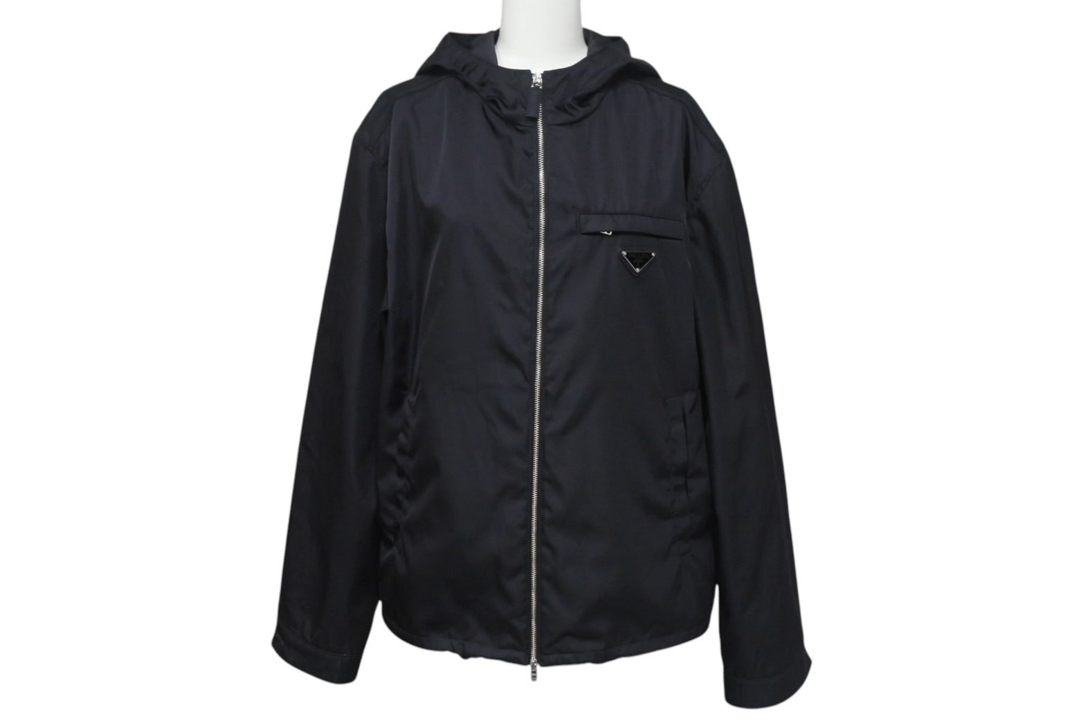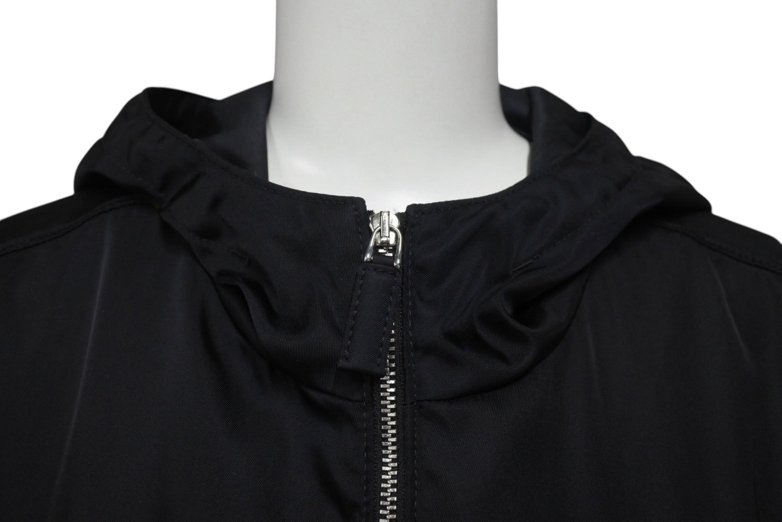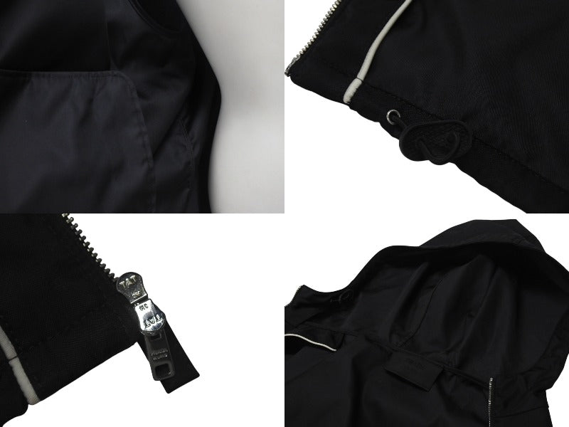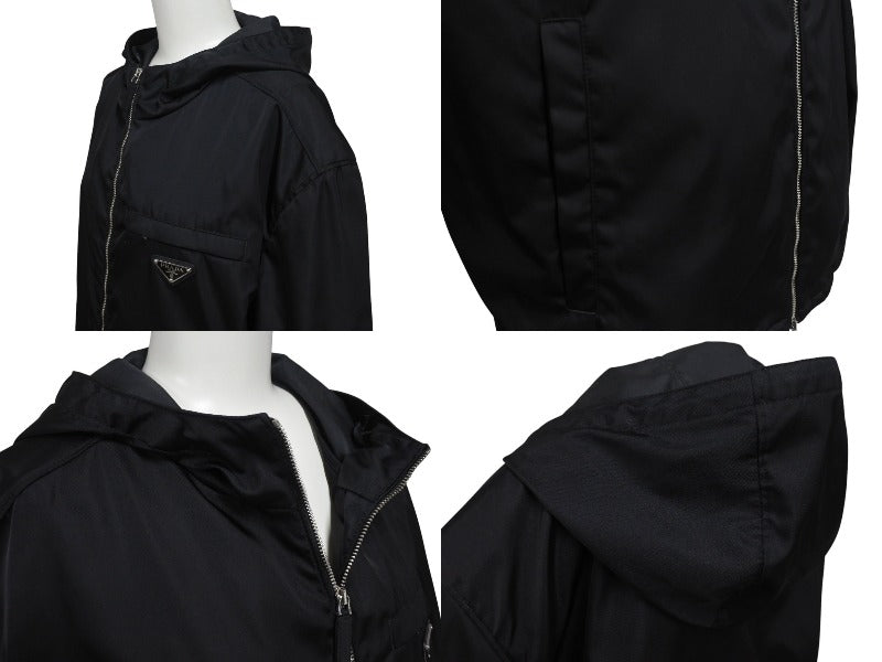 PRADA プラダ ナイロンジャケット トライアングルロゴ フード付き ナイロン ブラック シルバー金具 サイズ46 美品 中古 4b000937