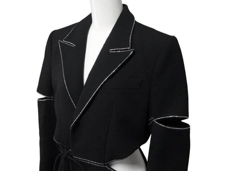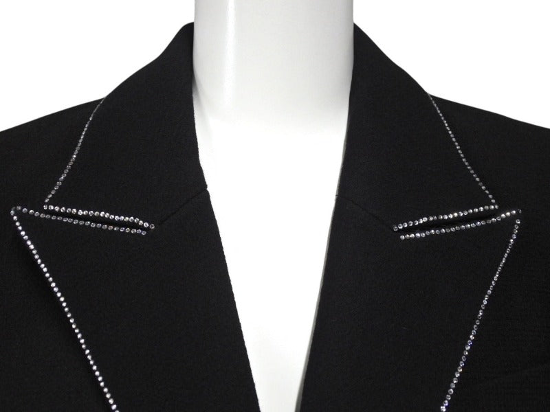 極美品 MACH & MACH マッハアンドマッハ テーラードジャケット イタリア製 ウール ラインストーン ブラック サイズ38 中古 4b004007