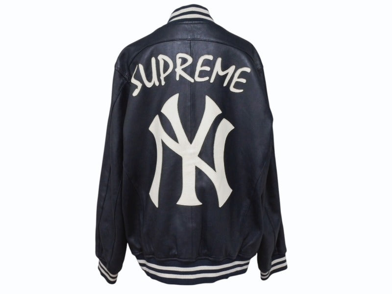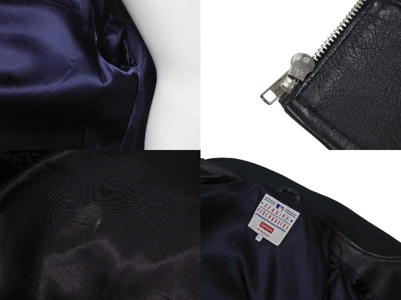 Supreme x Yankees シュプリームヤンキース ベースボールジャケット RN101837 ラムスキン ポリエステル ネイビー 美品 中古 4b005210