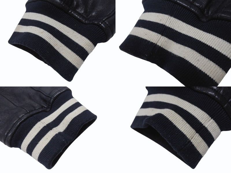 ラムスキンで作られたベースボールジャケットで胸と背中のアップリケも全てレザーで作られたラグジュアリーアイテムです。