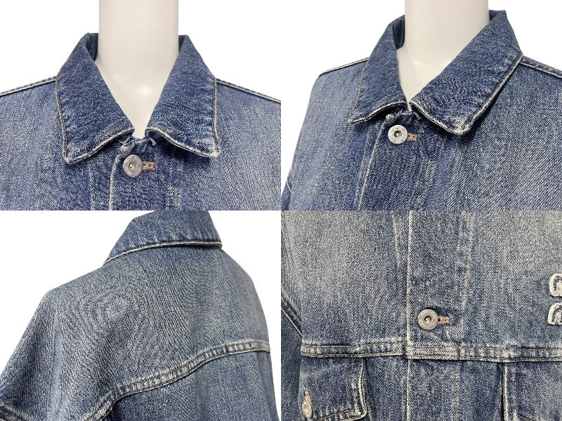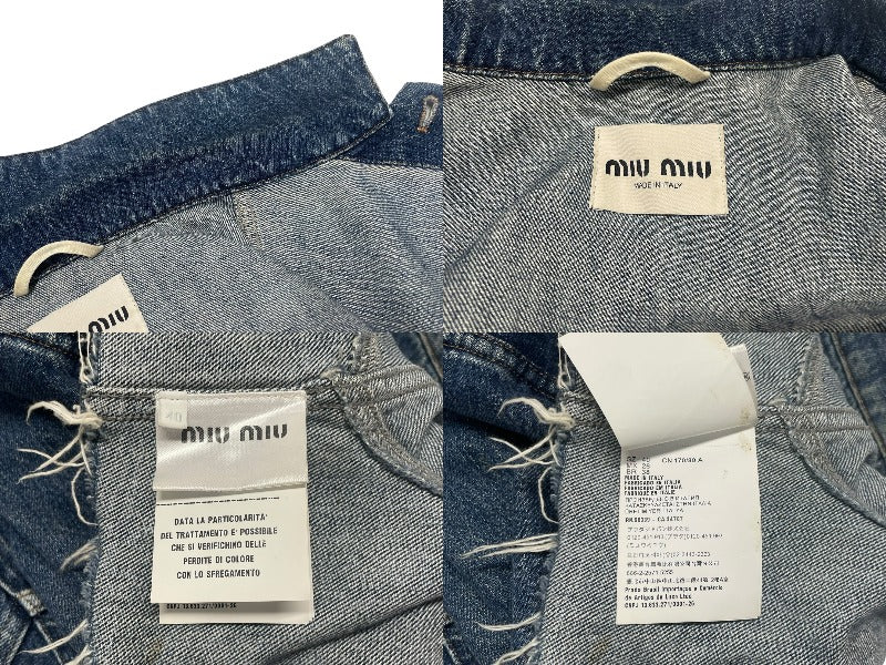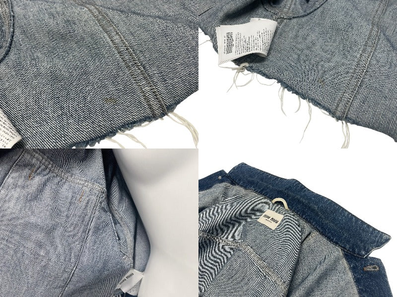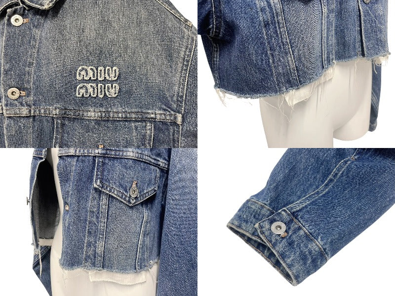MIUMIU ミュウミュウ デニム ブルゾン ジャケット ブルー ロゴ クロップド コットン アウター GWB148 サイズ40 美品 中古 4b006252
