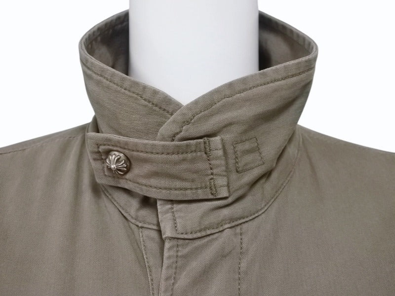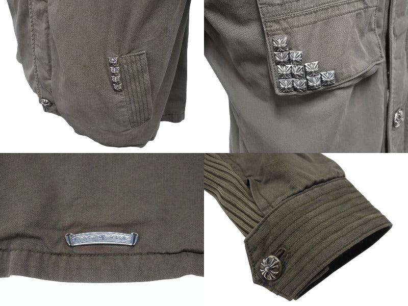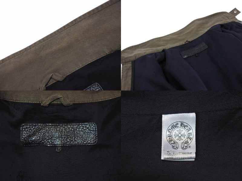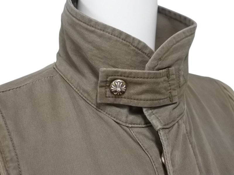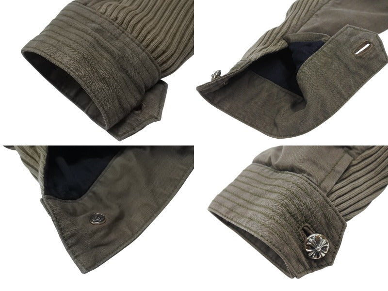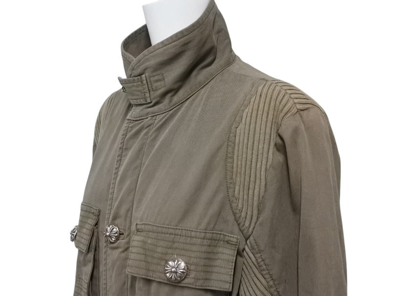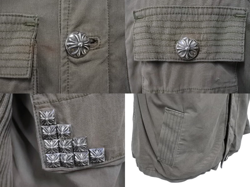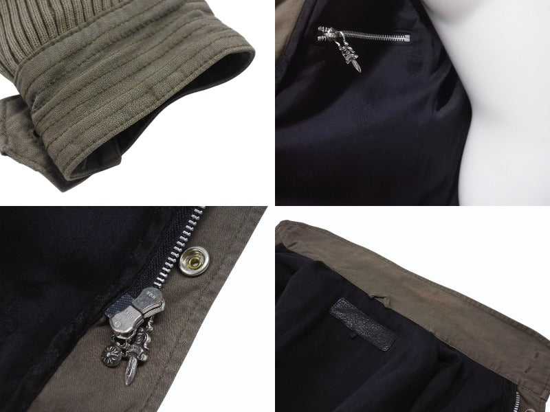 極美品 CHROME HEARTS クロムハーツ チェリーボム クロスボタン ジャケット ダブルジップ カーキ シルバー金具 サイズM 中古 4b006557