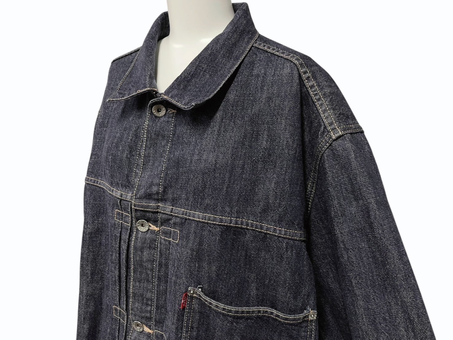 大きな胸ポケ、サイドポケット、ドーナツボタンなど、levisらしい商品です。